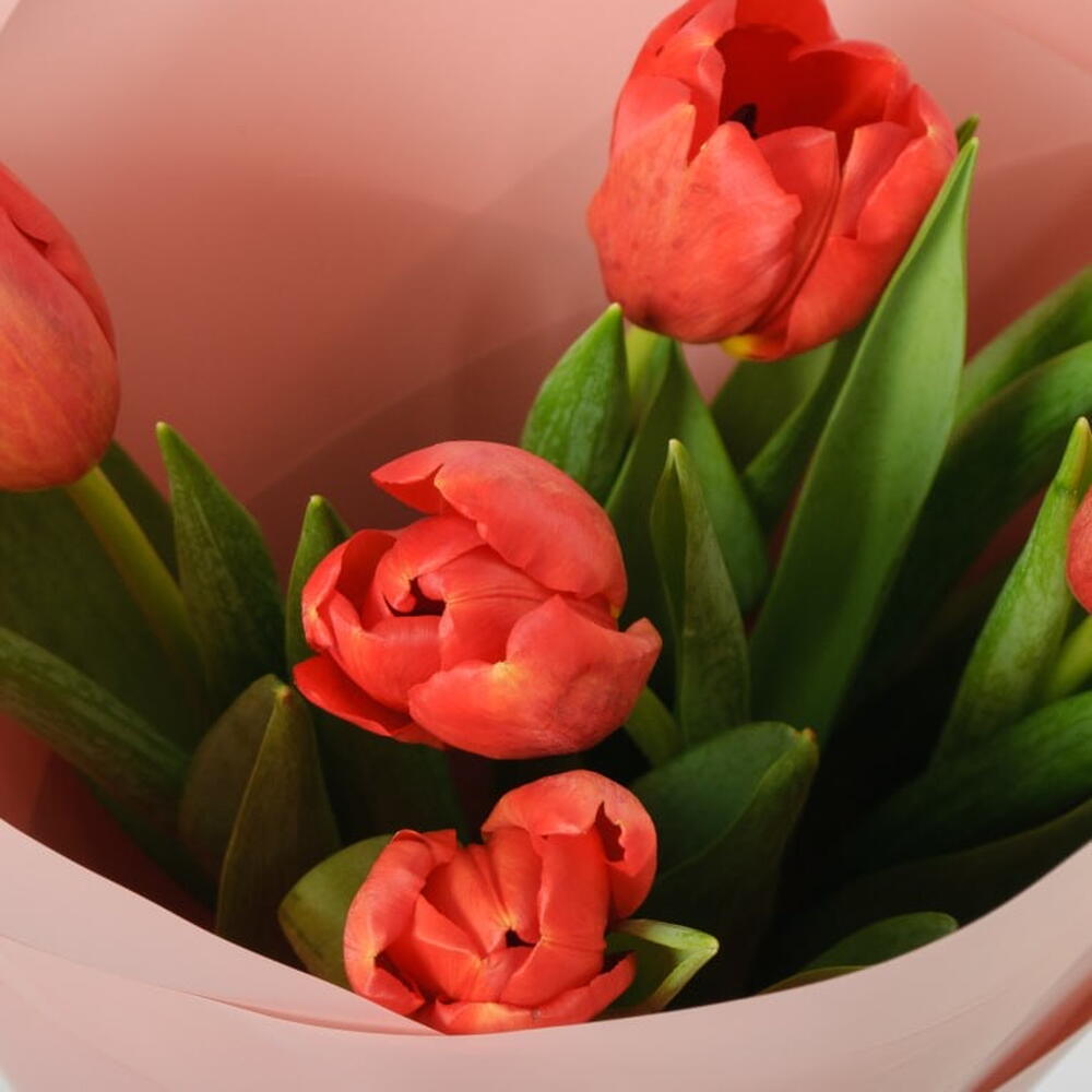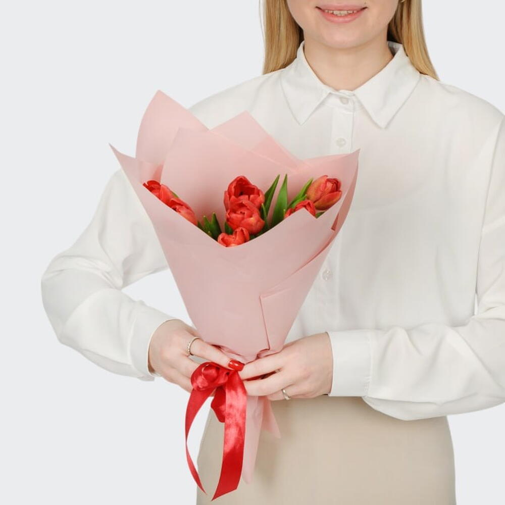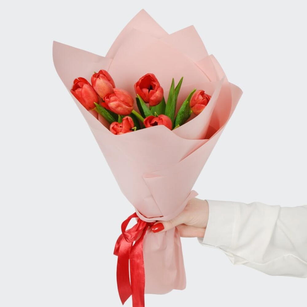 Тюльпан - 7 шт. Лента атласная - 1 шт. корейская дизайнерская упаковка - 1 шт.