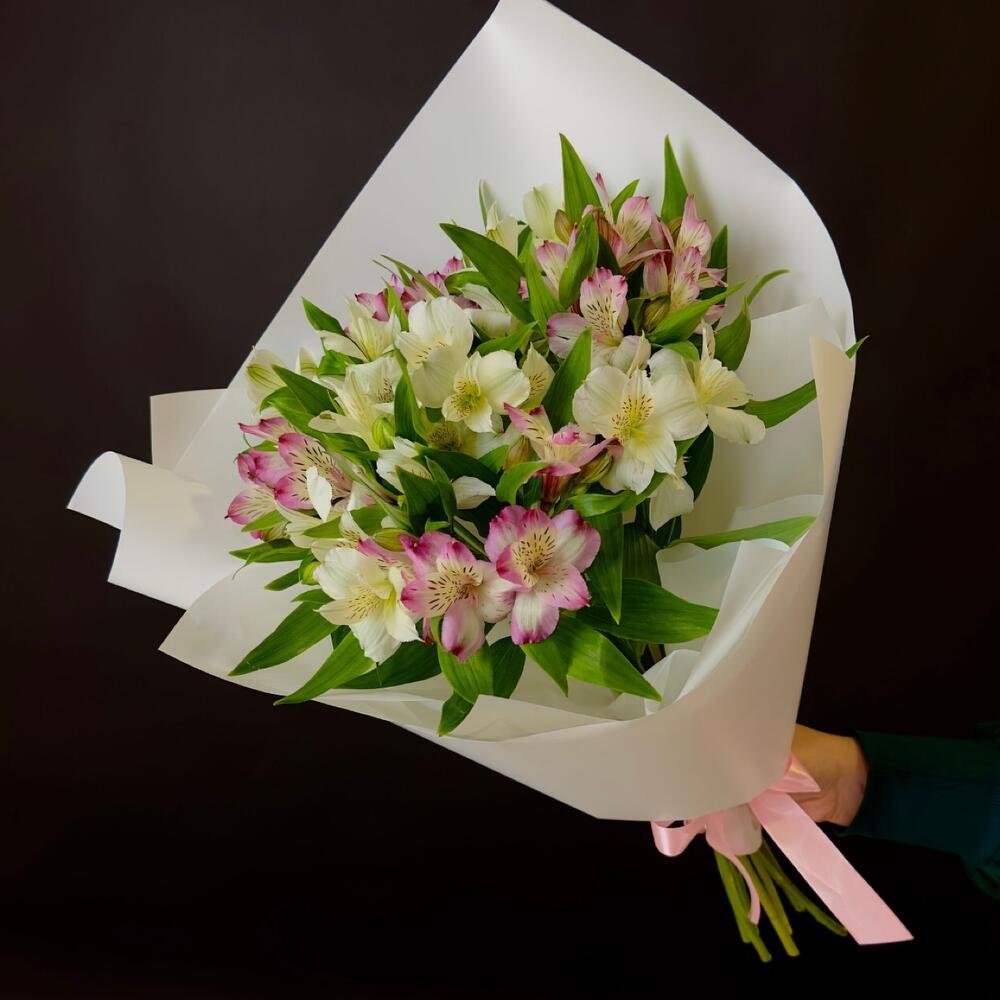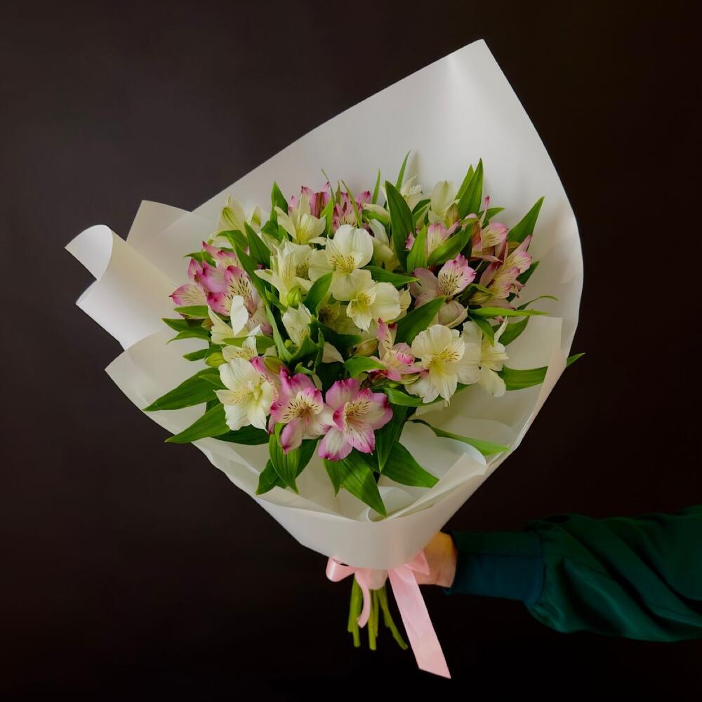 Альстромерия - 5 шт. Лента атласная - 1 шт. Упаковка дизайнерская - 3 шт.
