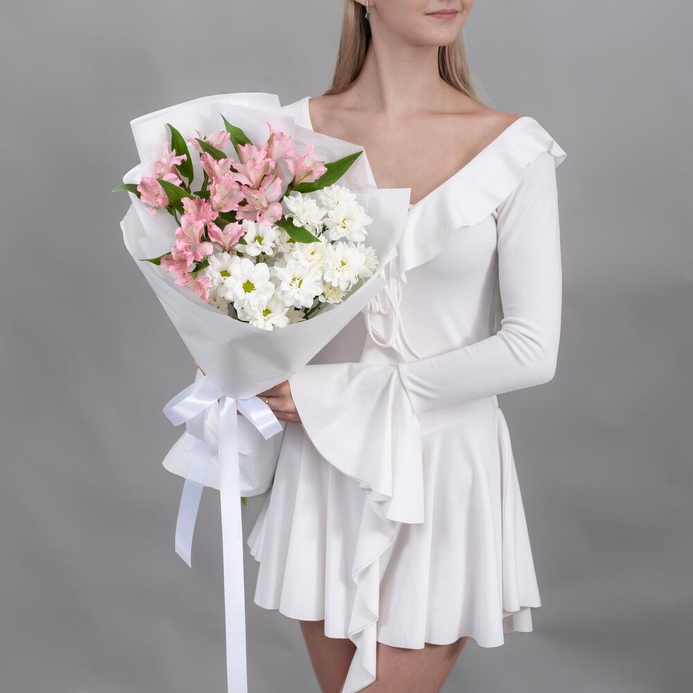 Букет из альстромерий и кустовых хризантем — это гармоничное сочетание нежности и объёма, которое подходит для различных поводов. Альстромерии добавляют композиции лёгкость и изящество, а кустовые хризантемы создают пышность и текстуру. Такое сочетание универсально: оно может быть как романтичным, так и торжественным в зависимости от цветовой гаммы и оформления. Хорошего настроения и удачных приобретений!