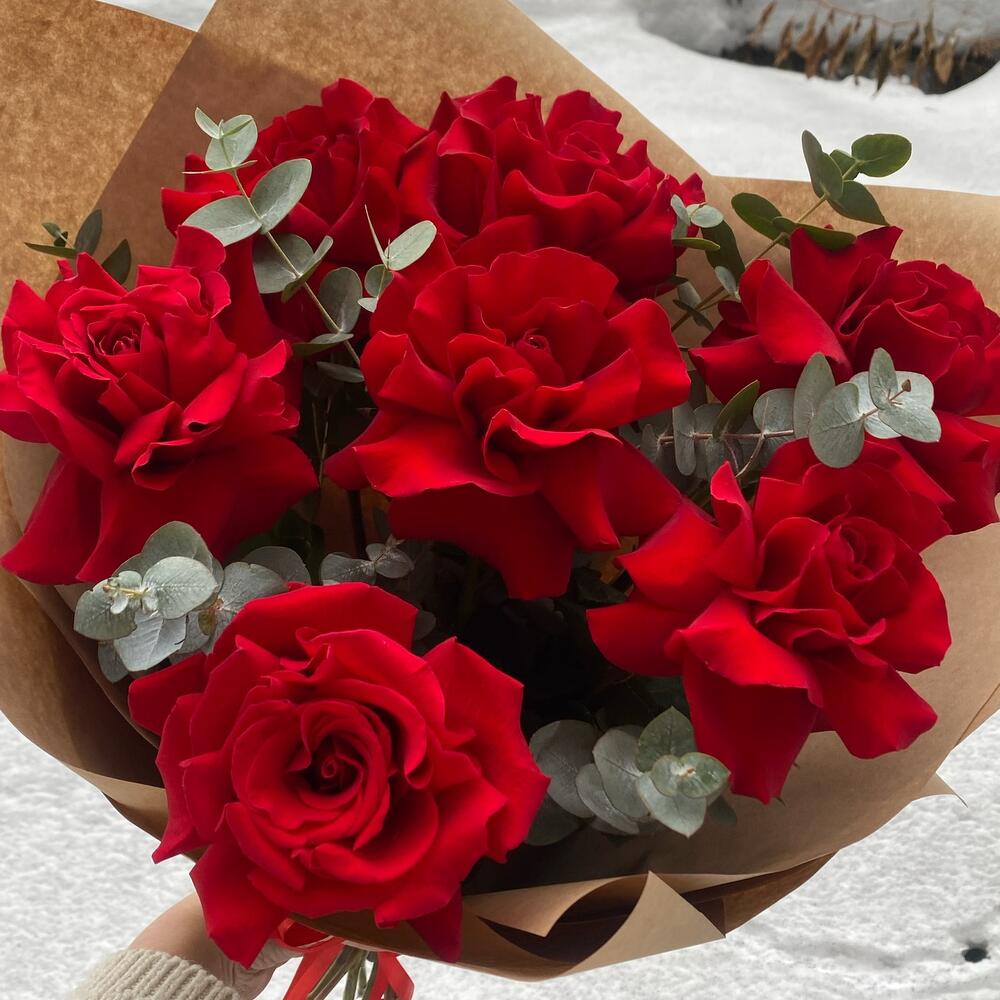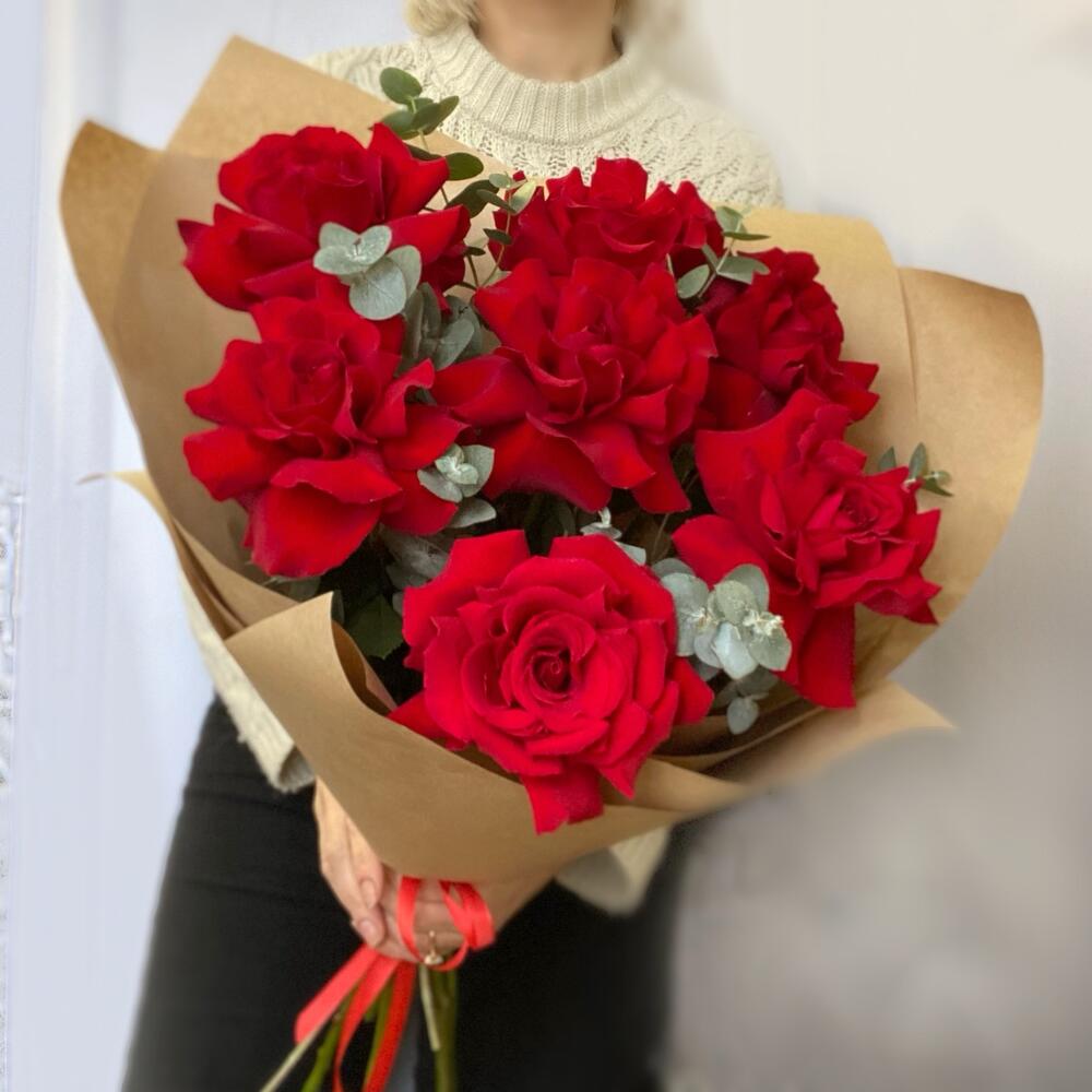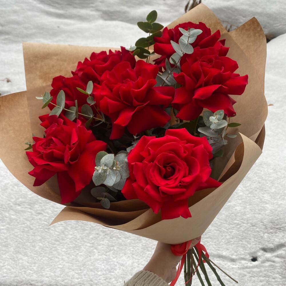 Эвкалипт - 5 шт. Роза французская - 7 шт. Упаковка крафт - 1 шт.