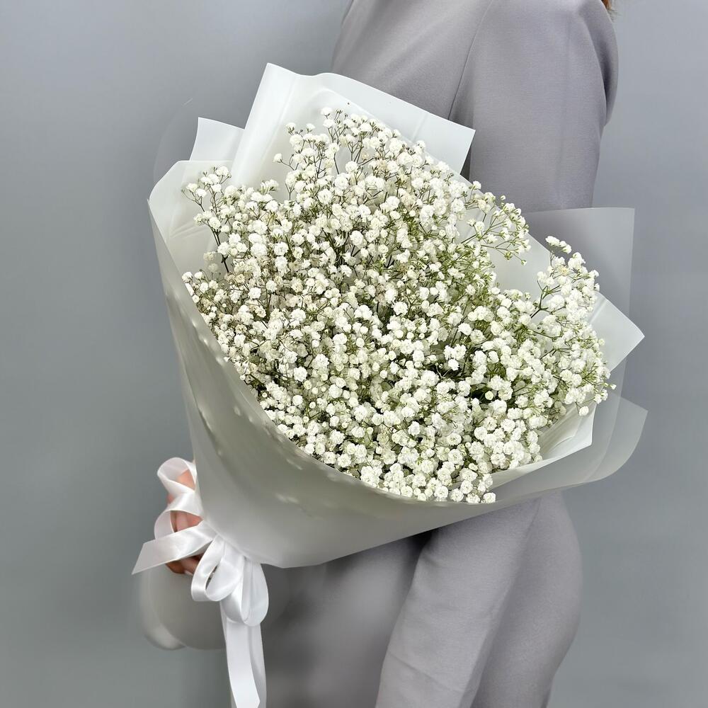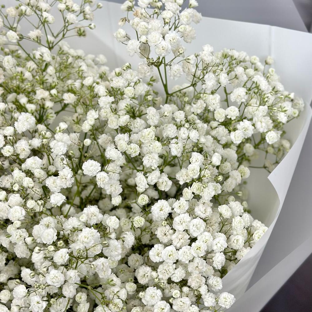 Гипсофила - 7 шт. Лента атласная - 1 шт. Дизайнерская упаковка - 1 шт.