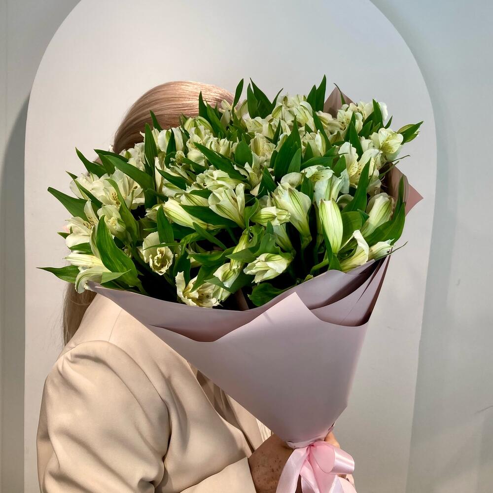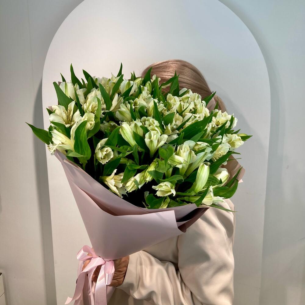Монобукет из 15 белых альстромерий "Лунная ночь"