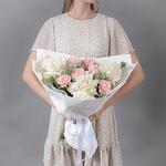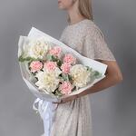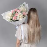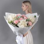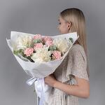 Букет из белых французских роз, розовых гвоздик и эвкалипта — это элегантная композиция, сочетающая нежность, изысканность и свежесть. Хорошего настроения и удачных приобретений!