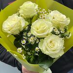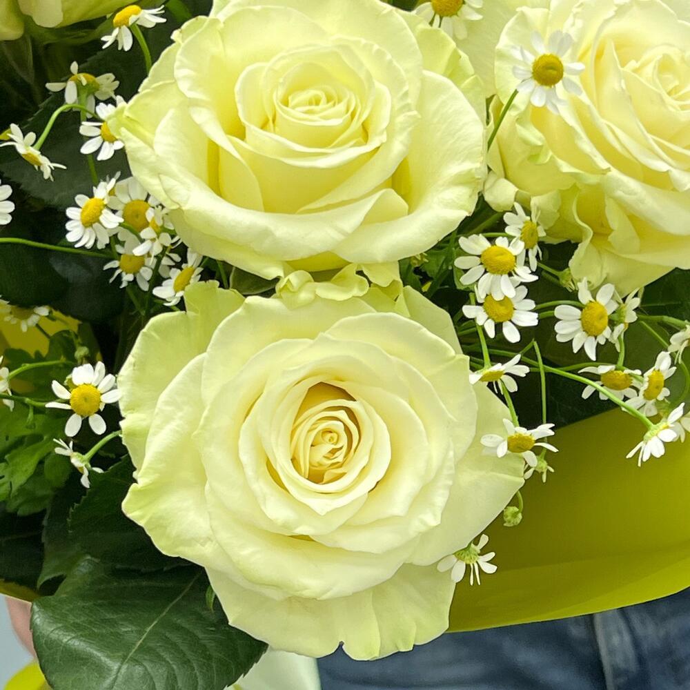 Обворожительные белые розы в сочетании с ромашками , не оставят получателя равнодушным, порадуйте любимых🌸