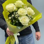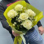 Букет из Белых роз с очаровательными ромашками