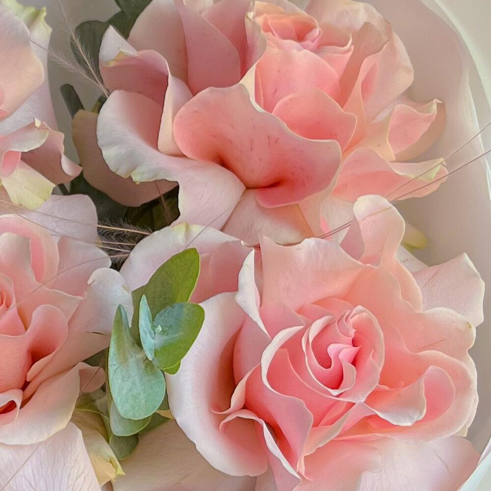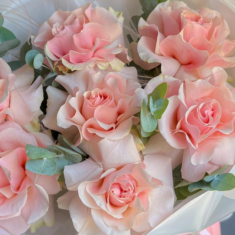 Кружевные розовые Розы главный тренд этого года💐 Букет с однозначным вау-эффектом❤️ Розовые розы дополнены нежным эвкалиптом и изящной ковыляю Размер букета указан по упаковке. 🎁 В подарок добавим коробочку конфеток из нежного бельгийского шоколада