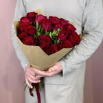 Букет, в котором — вся ваша любовь Нежный, но выразительный букет из бордовых роз с аккуратно подобранной зеленью — это искренний символ вашей благодарности, уважения и глубокой любви к самому родному человеку на свете — маме. Бордовый оттенок роз подчеркивает благородство её характера, а свежая зелень добавляет композиции лёгкости и естественности. Упаковка из натурального крафта придаёт букету уютную, тёплую атмосферу — словно объятие, которое хочется сохранить подольше. Такой букет не просто радует глаз — он говорит без слов: «Спасибо тебе, мама, за всё». Подарите ей этот трогательный жест в День матери — и пусть каждый лепесток напоминает о вашей заботе.