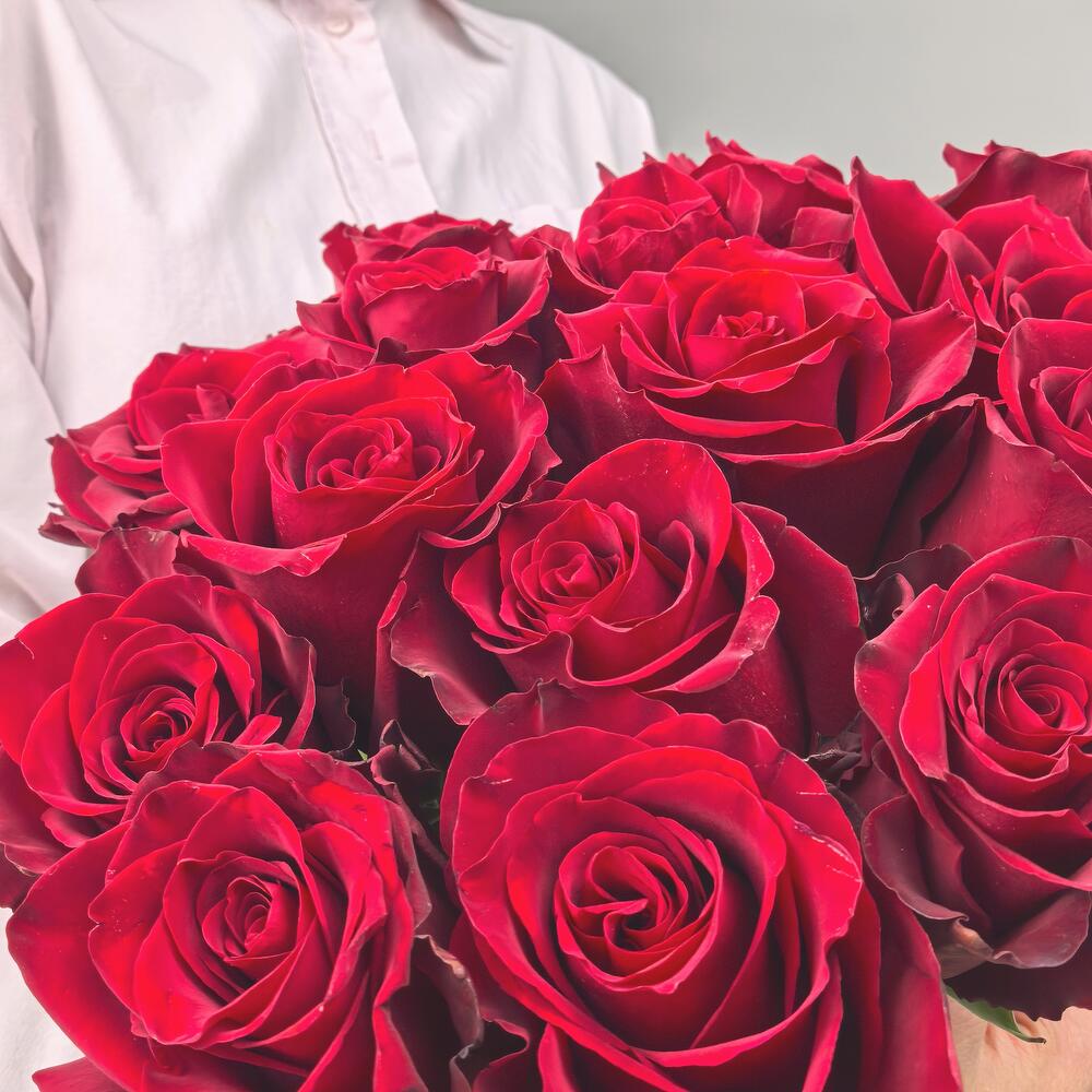 Описание букета: Этот роскошный, эффектный букет из 15 бордовых роз — воплощение страсти, силы чувств и благородства. Бархатистые лепестки глубокого бордового оттенка создают невероятно впечатляющий образ, который завораживает с первого взгляда. Букет из 15 роз символизирует глубокую преданность, искренние чувства и благодарность. Такой подарок подойдёт для очень важного события, признания в любви или особого торжества, когда хочется сказать о своих чувствах без лишних слов. Инструкция по уходу за букетом из 15 роз: Снимите упаковку, чтобы розы могли дышать и расправиться. Обрежьте стебли на 2–3 см под углом острым ножом или секатором. Удалите нижние листья и при необходимости шипы, чтобы они не оказались в воде. Поставьте розы в большую, устойчивую вазу с прохладной, чистой водой (лучше фильтрованной или отстоянной). Добавьте в воду питательный раствор (готовый из магазина или домашний — 1–2 ч. л. сахара и несколько капель лимонного сока на литр воды). Меняйте воду каждые 1–2 дня, тщательно промывая вазу и обновляя срезы. Храните букет в прохладном месте, подальше от прямого солнечного света, сквозняков и плодов (фрукты выделяют этилен, который ускоряет увядание).