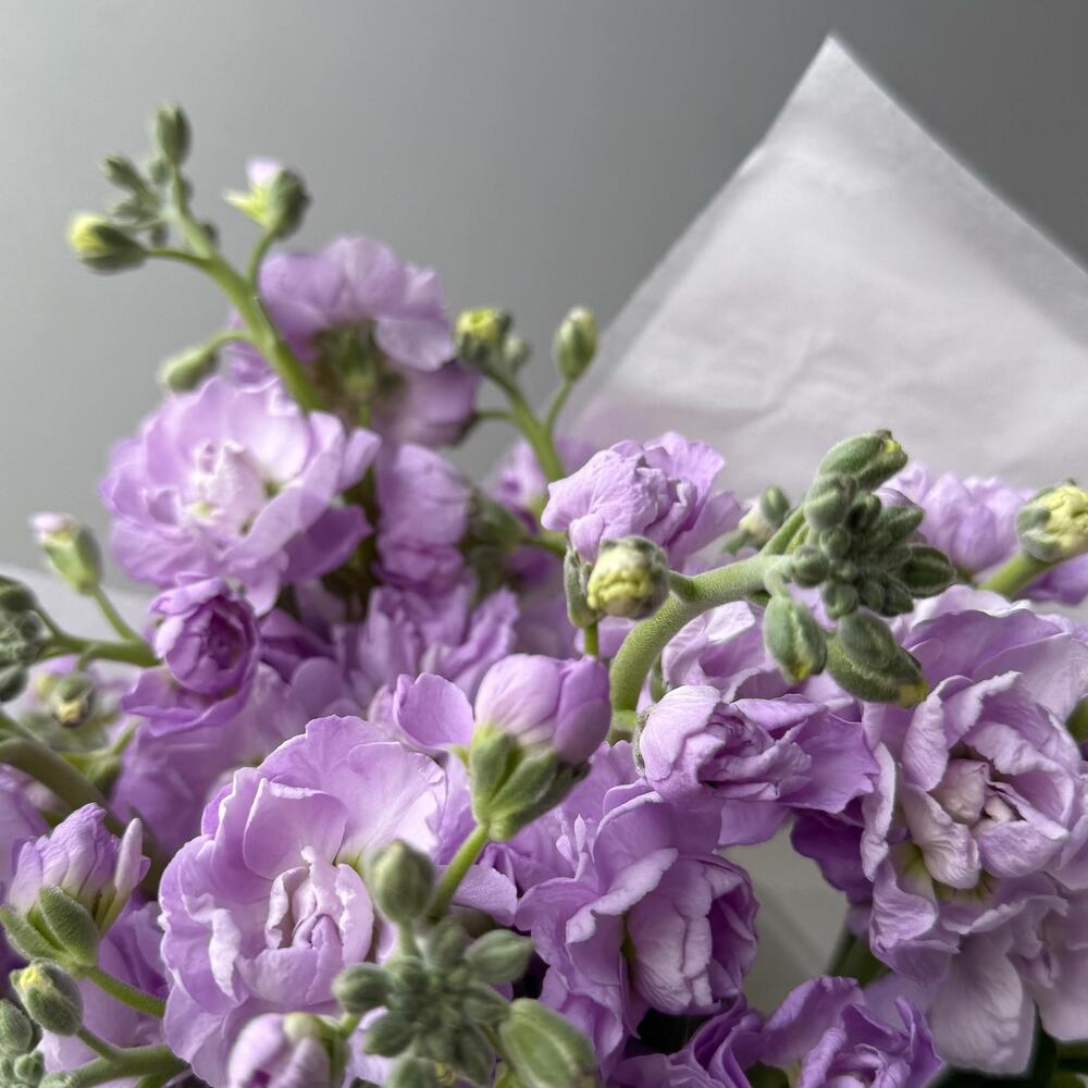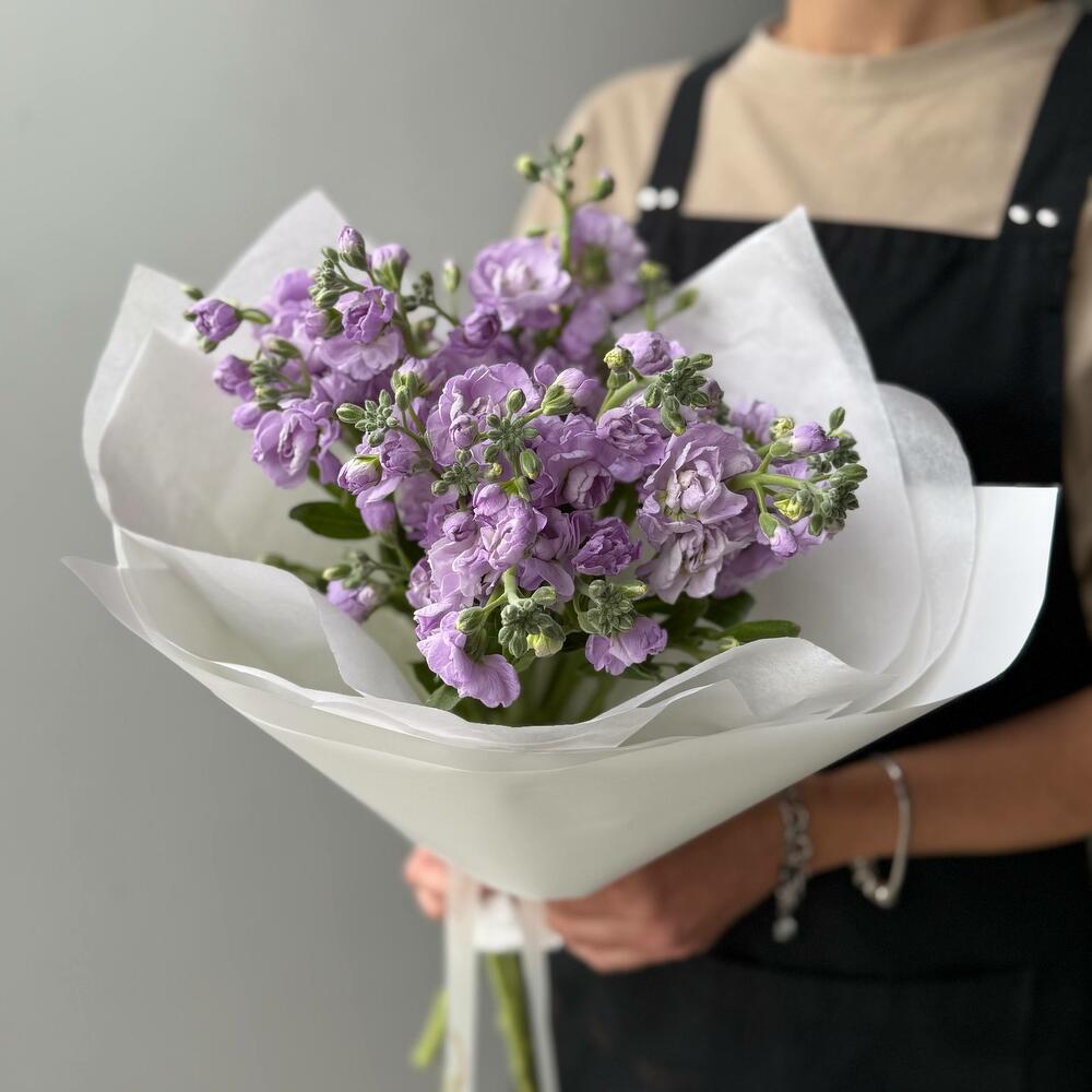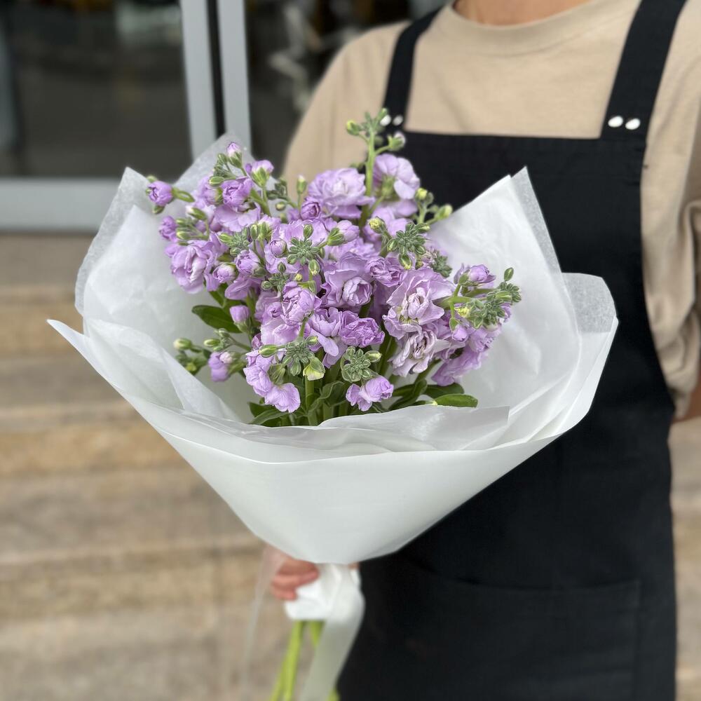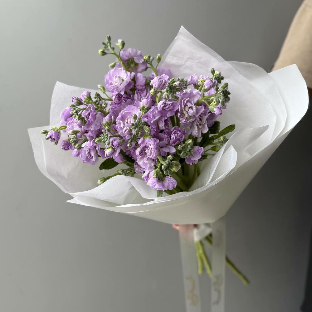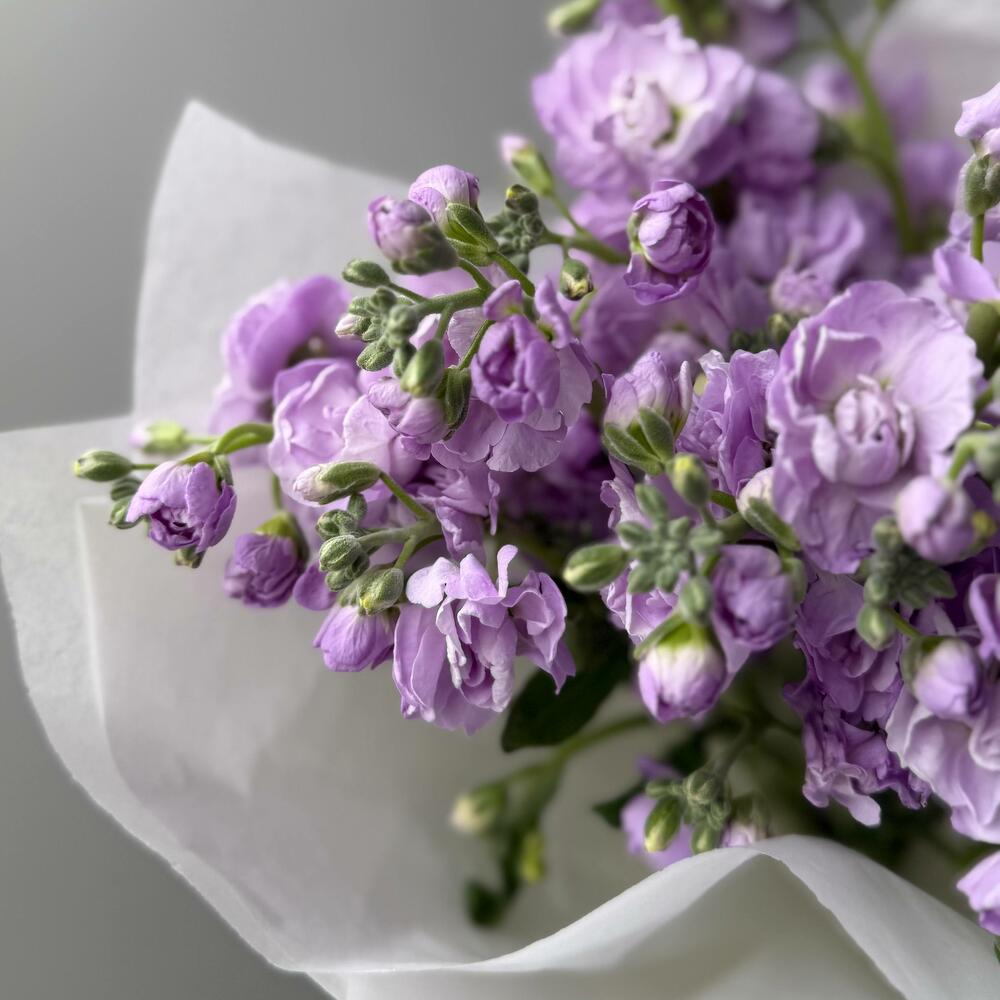 Букет из ароматных кустовых маттиол в дизайнерской упаковке) Все наши композиции составляются и доставляются с любовью 🌼 Букет Вы получите в аквабоксе и в транспортировочной коробке, а также в подарок мы прикладываем подкормку для продления жизни срезанным цветам, фирменный шоколад и брендированный подарок от нашего салона. Мы следим за качеством нашего цветка и гарантируем Вам лучший сервис 🤍
