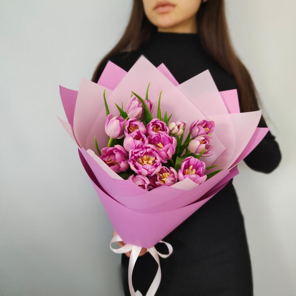 Букет из фиолетовых пионовидных тюльпанов, букет на 8 марта