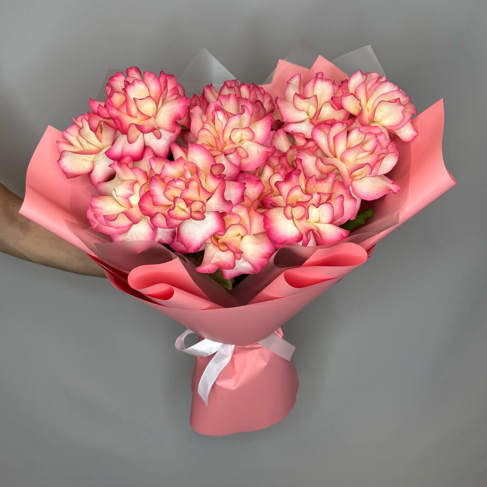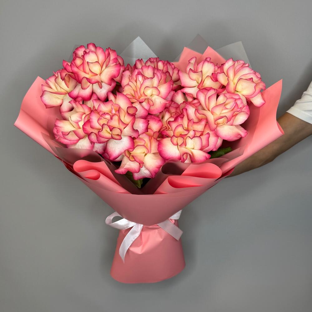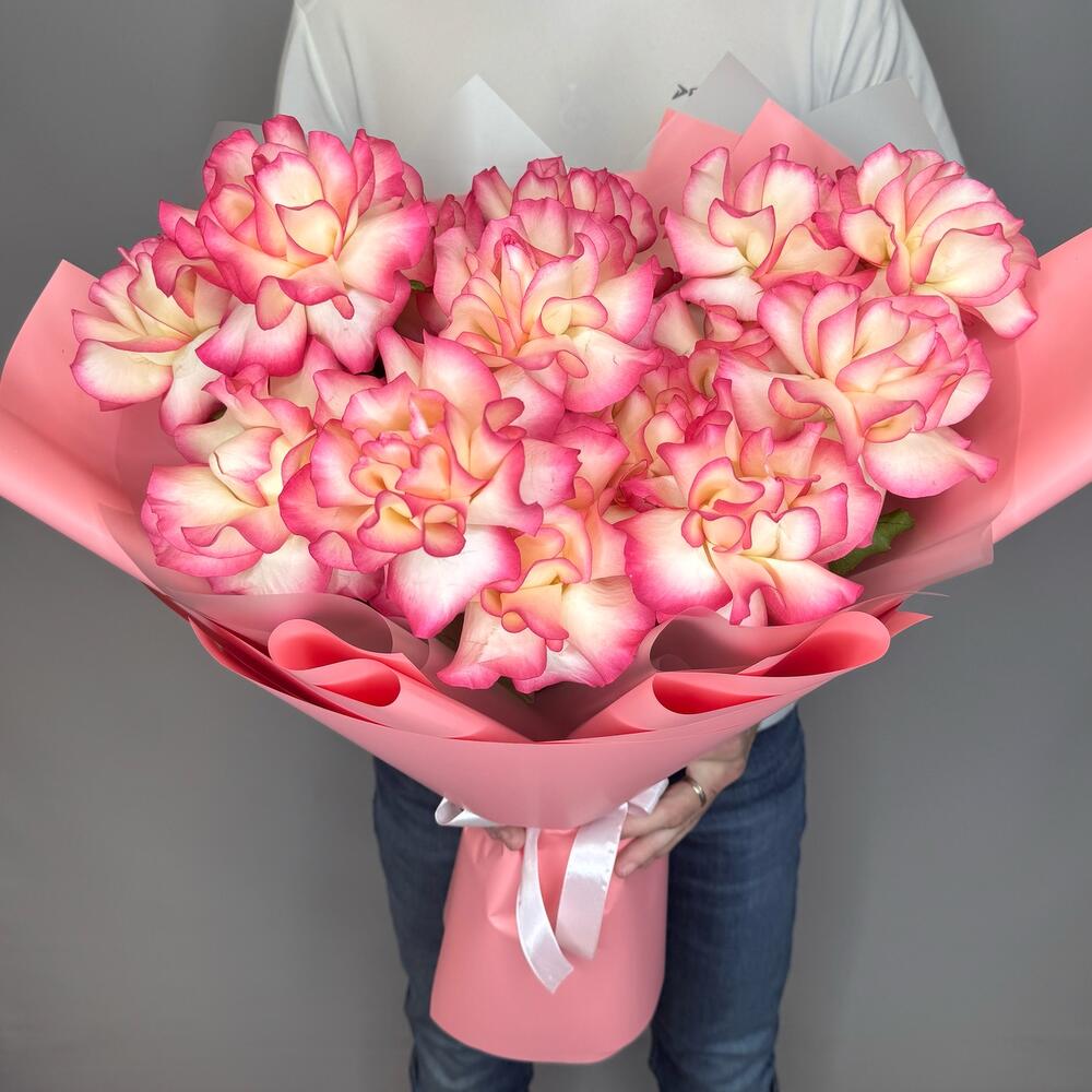 Лента атласная - 1 шт. Роза французская - 15 шт. Корейская упаковка - 2 шт.