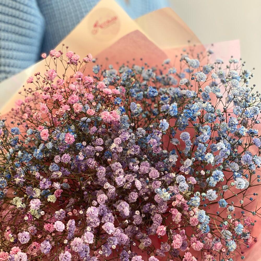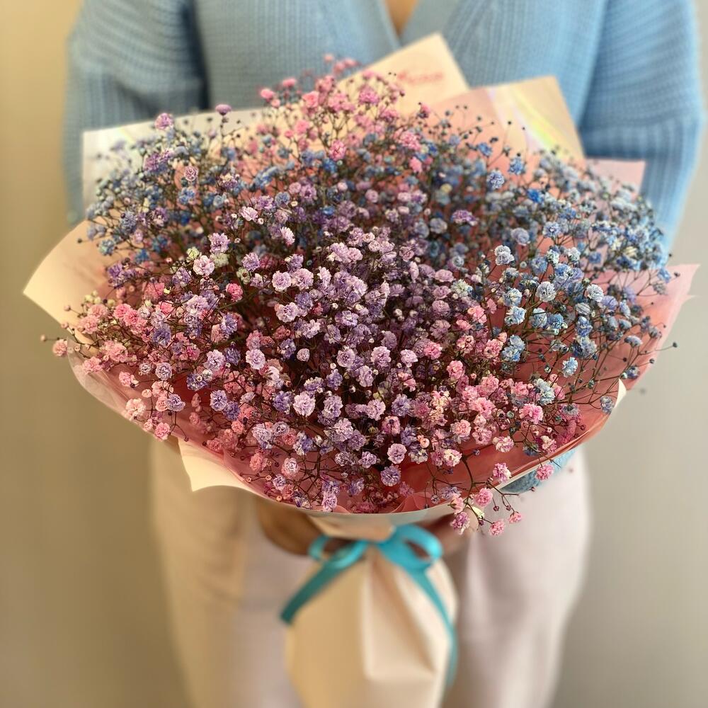 Гипсофила - 5 шт. Лента атласная - 1 шт. Матовая пленка - 1 шт.