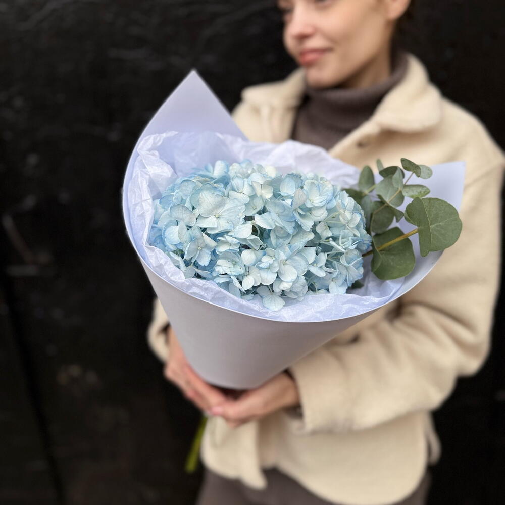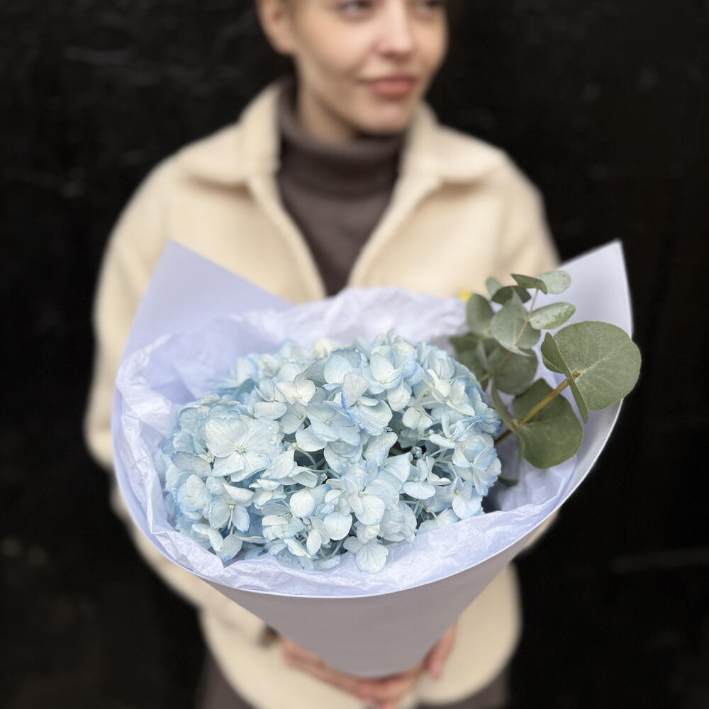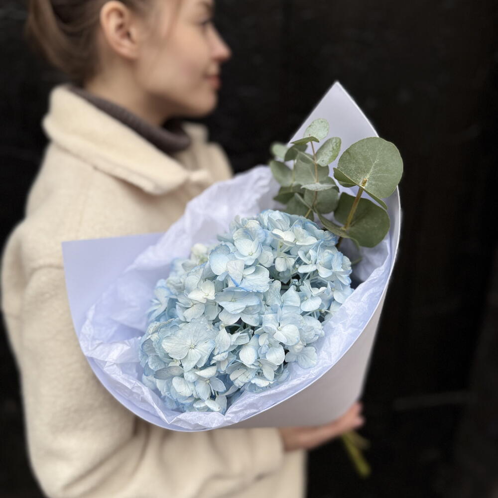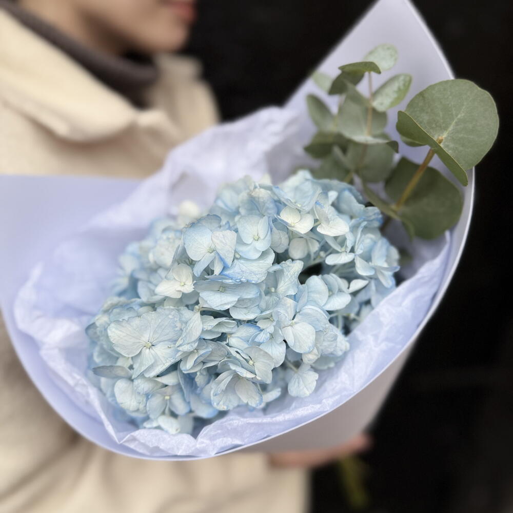 Букет комплимент из гортензии и эвкалипта