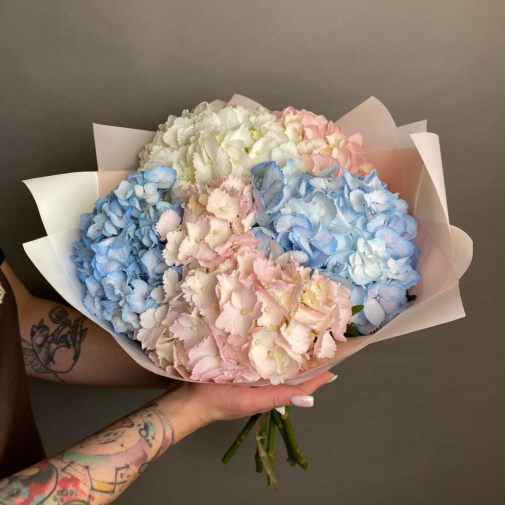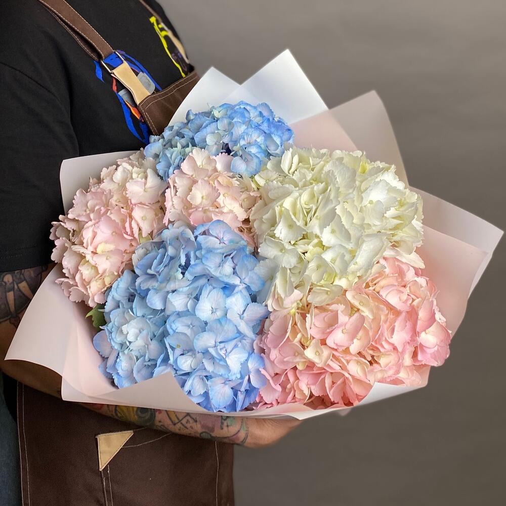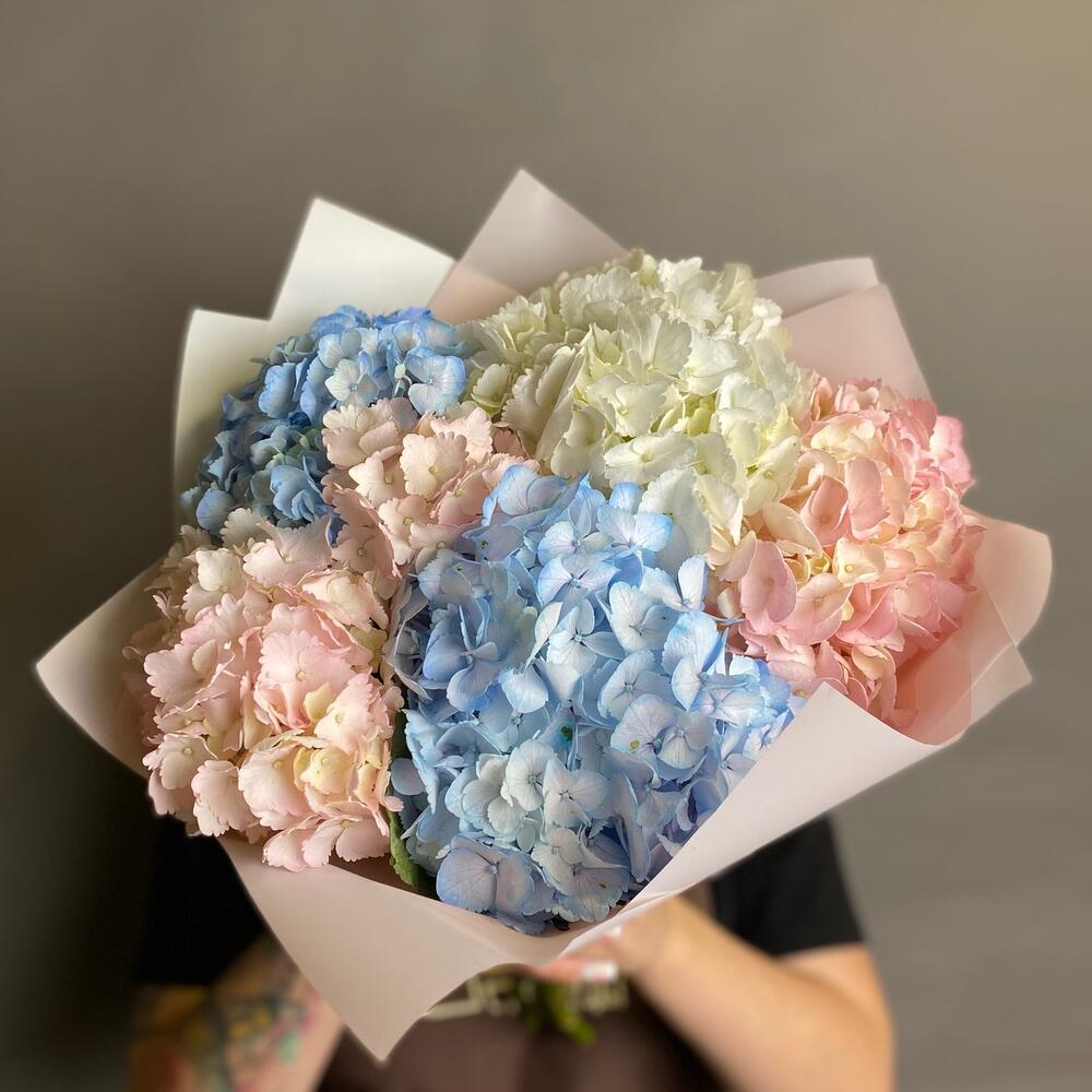 Воздушный монобукет из гортензий, поднимает настроение своему получателю в любую погоду! 🌺