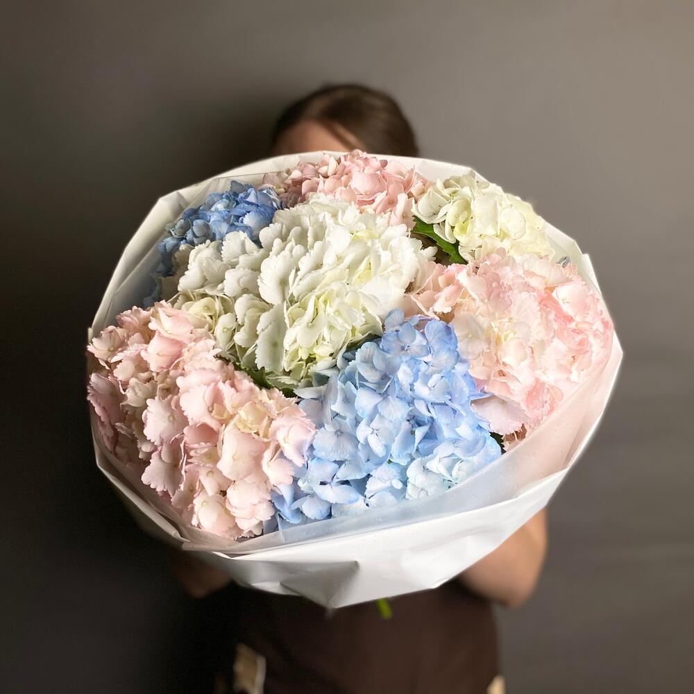 Букет из воздушной разноцветном гортензии, прекрасный выбор для подарка! К каждому букету мы добавляем подкормку для цветов 🙏🏼🌺
