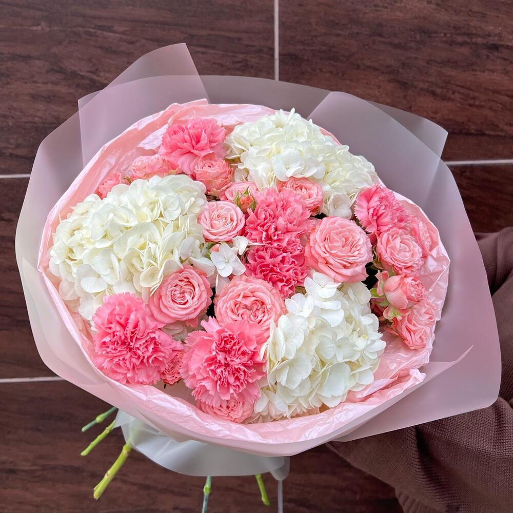 Букет из кустовой пион розы, диантуса и гортензий 🩷 Отличный подарок на любой повод, либо вовсе без повод Букет можно подарить как любимой женщине, так и коллеге! ⭐️ КЭШБЭК 3% с каждой покупки бонусами ⭐️ быстрая доставка цветов ⭐️ свежие поставки несколько раз в неделю ⭐️ быстрая сборка букетов от 20 минут Советы по уходу: При получении букета обязательно сделать свежий срез 1см и поставить цветы в холодную воду! Менять воду и делать свежий срез раз в 1-2 дня! Для продления жизни цветам, рекомендовано ставить их в прохладное место, вдали от солнечных лучей! Если же вы получили композицию и цветы питаются из пиафлора (флористическая губка), необходимо подлевать холодную воду каждый день! Будем рады вашим заказам🌸❤️
