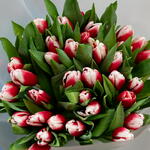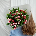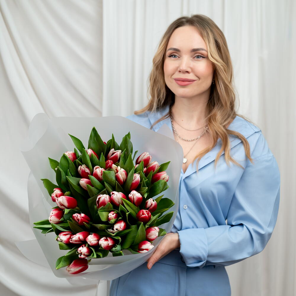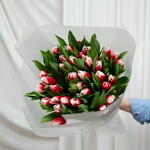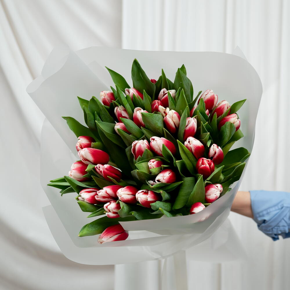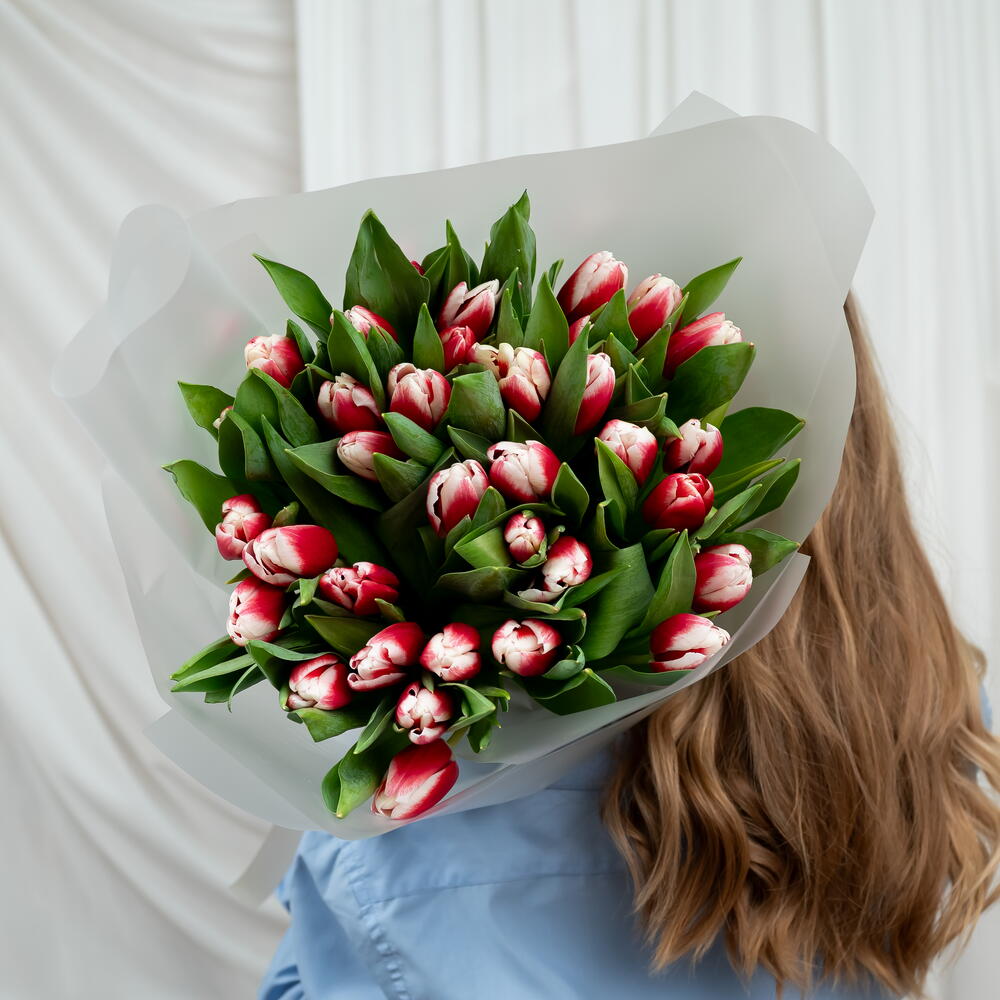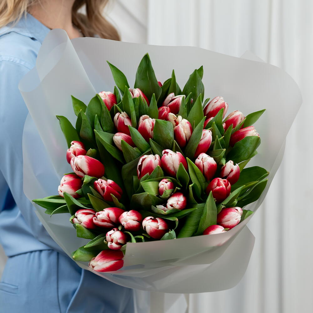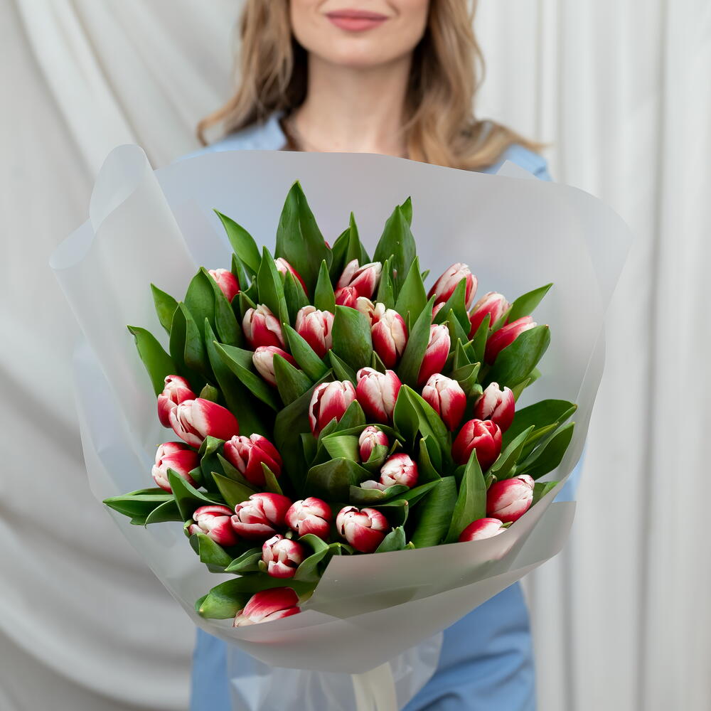 Букет из красно-белых тюльпанов 35шт - Цветочная сказка