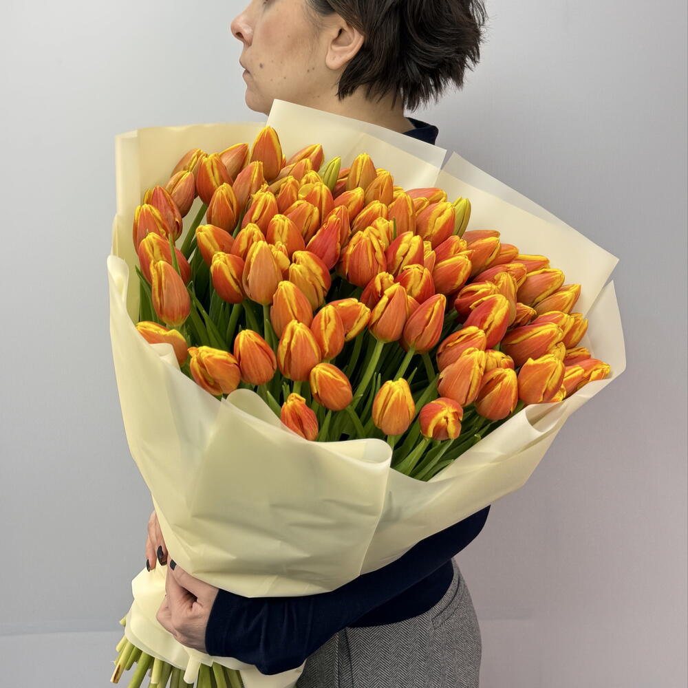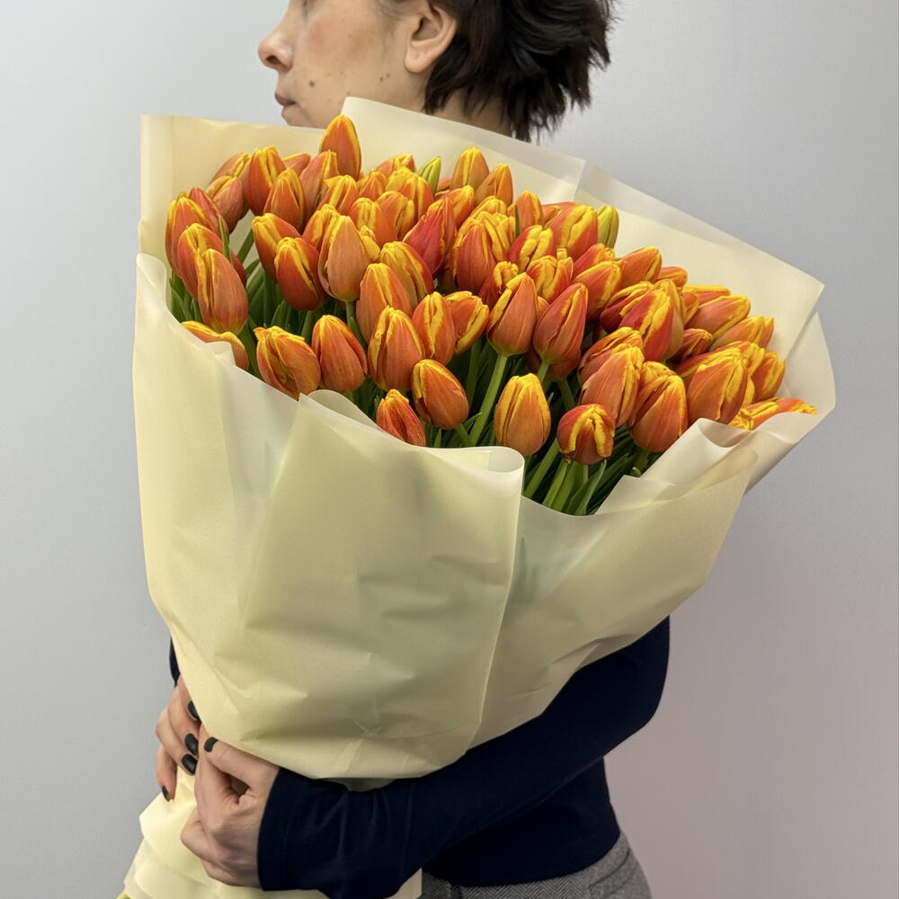 Букет из свежих тюльпанов — воплощение весенней нежности и огненности. Яркие и воздушные просторы символизируют новые начинания и чистоту. Идеальный способ выразить искренние чувства и подарить радость.