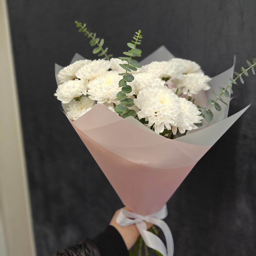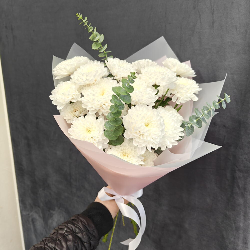Букет из кустовой хризантемы Алтай с эвкалиптом 🌱