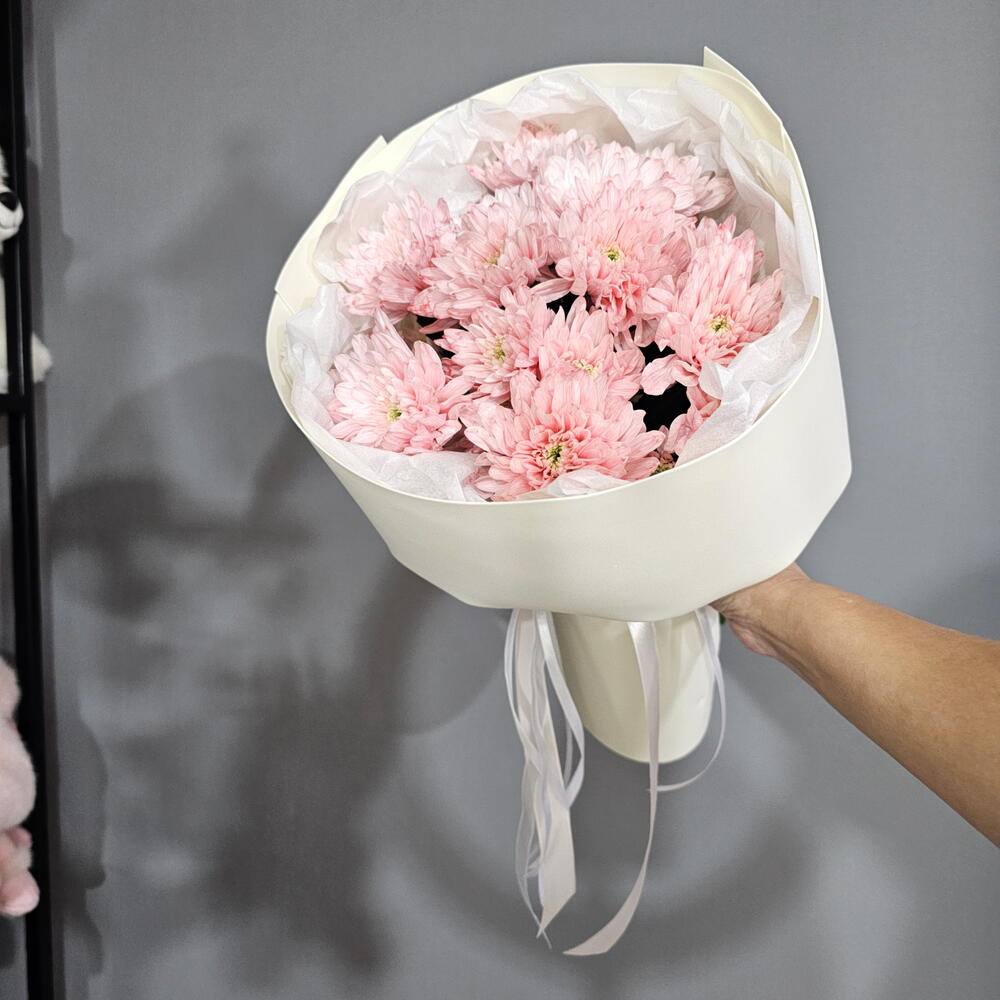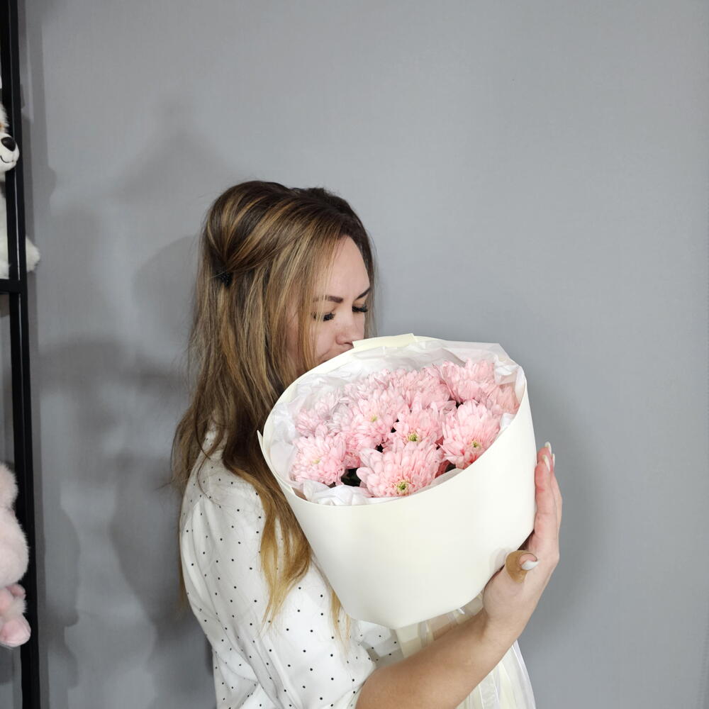 Букет из кустовых хризантем розовый