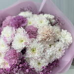 Гипсофила - 3 шт. Хризантема кустовая - 5 шт. Диантус - 11 шт. Дизайнерская упаковка - 1 шт.