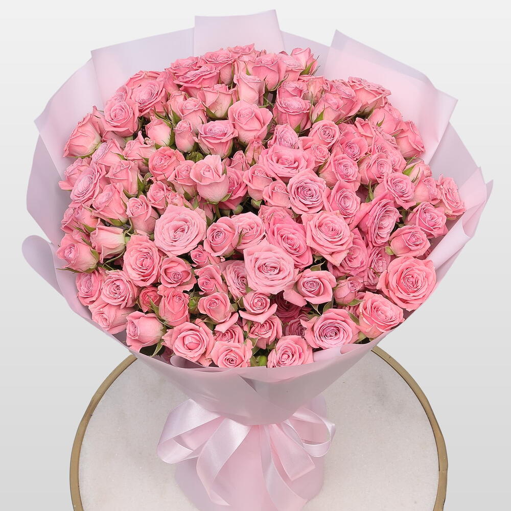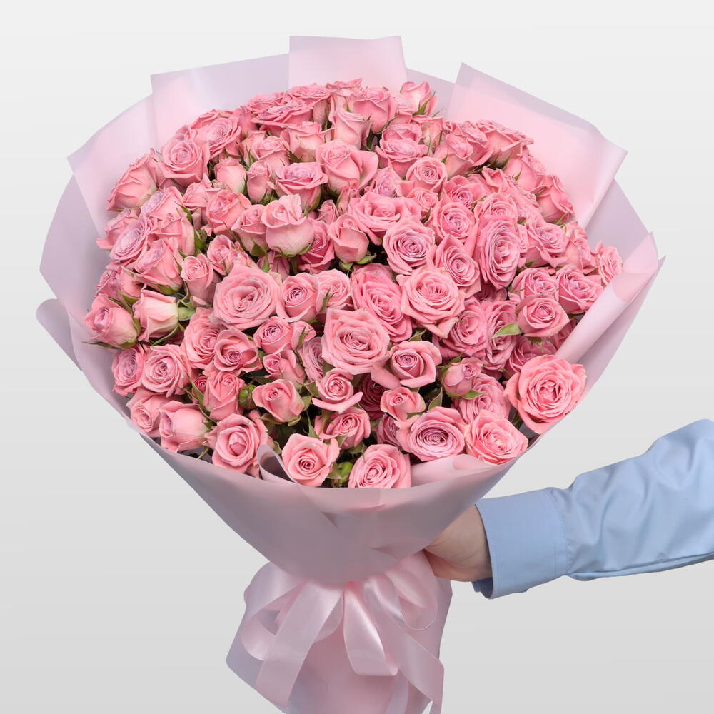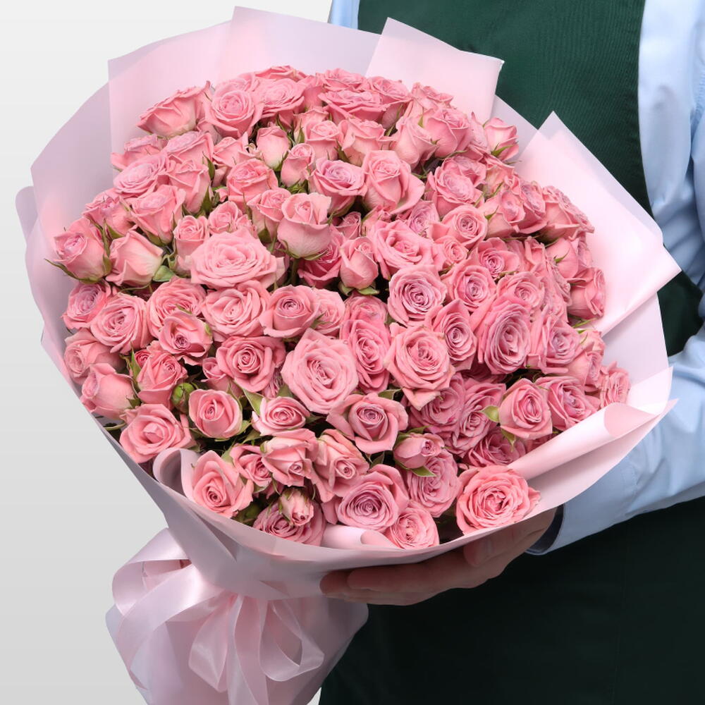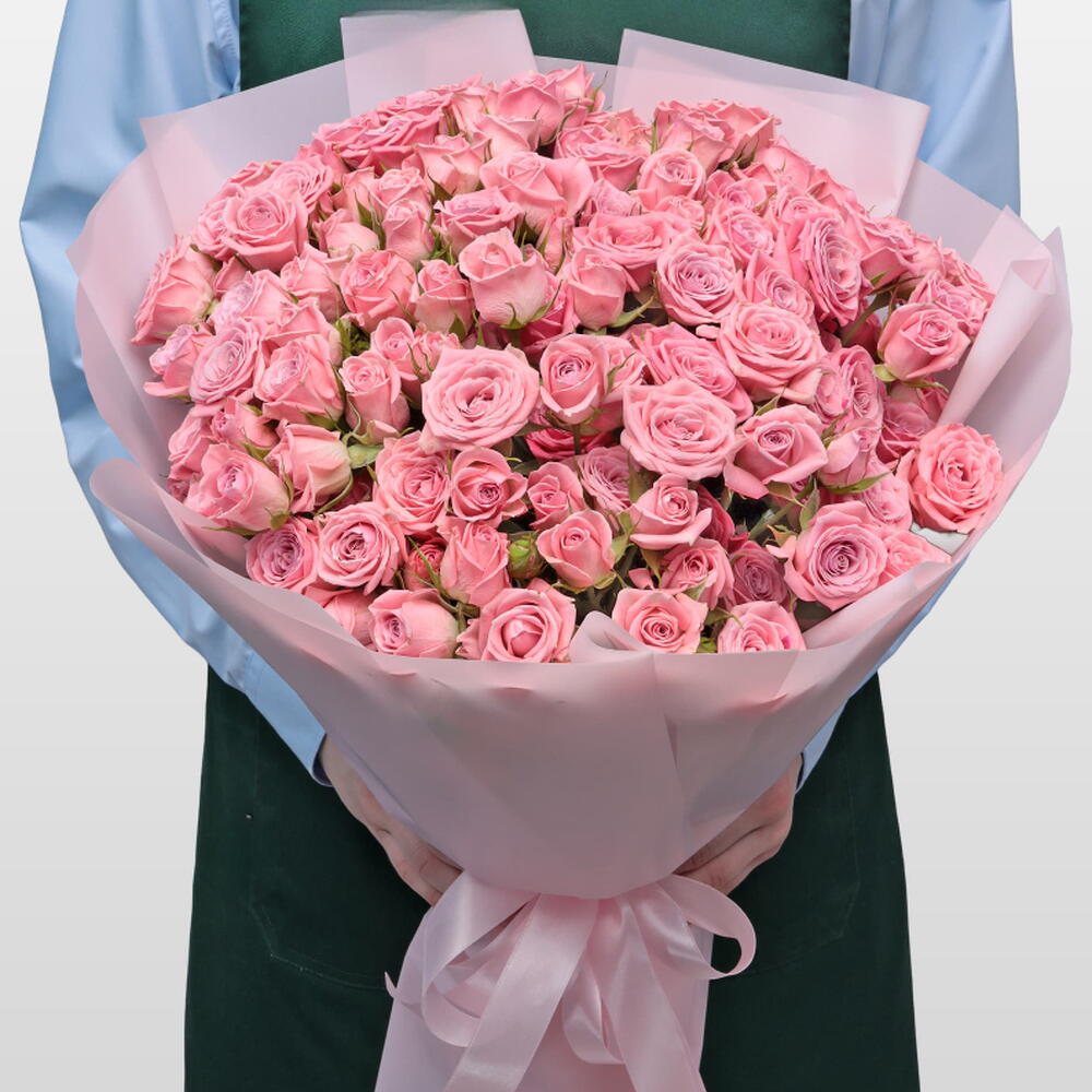 Кустовая роза - 31 шт. Упаковка - 1 шт. Атласная лента - 1 шт.