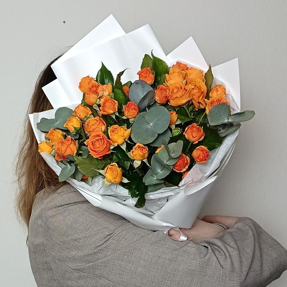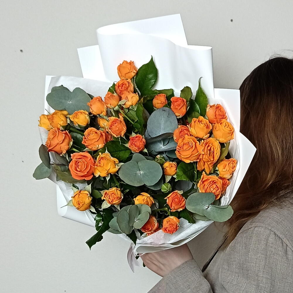 Букет из кустовых роз с веточками эвкалипта. Идеальный букет чтобы чей то день стал лучше.