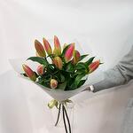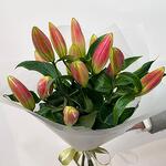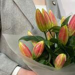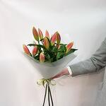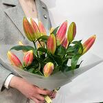 Букет из розовых лилий в стильном оформлении