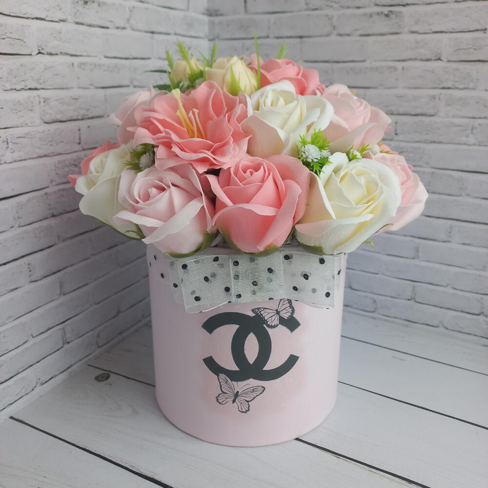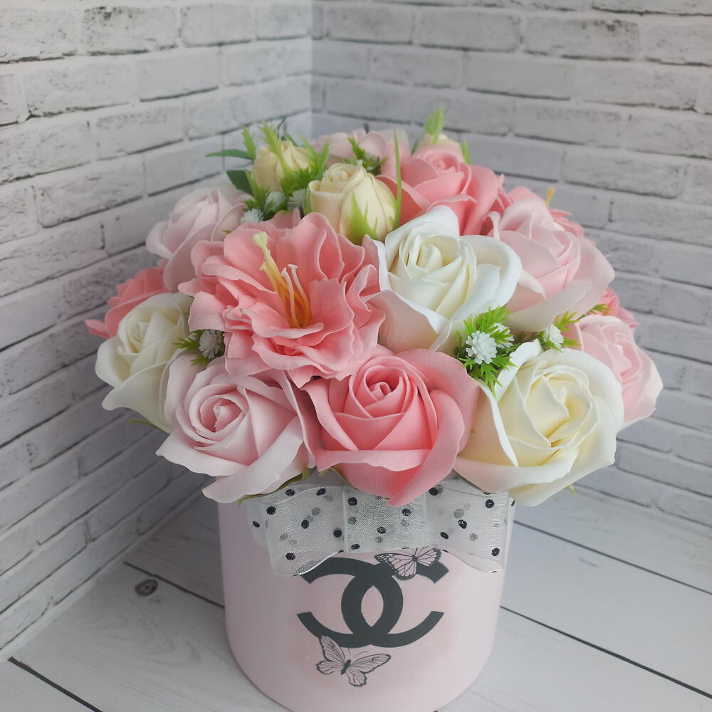 Букет из мыльных цветов-коробочка с бабочками