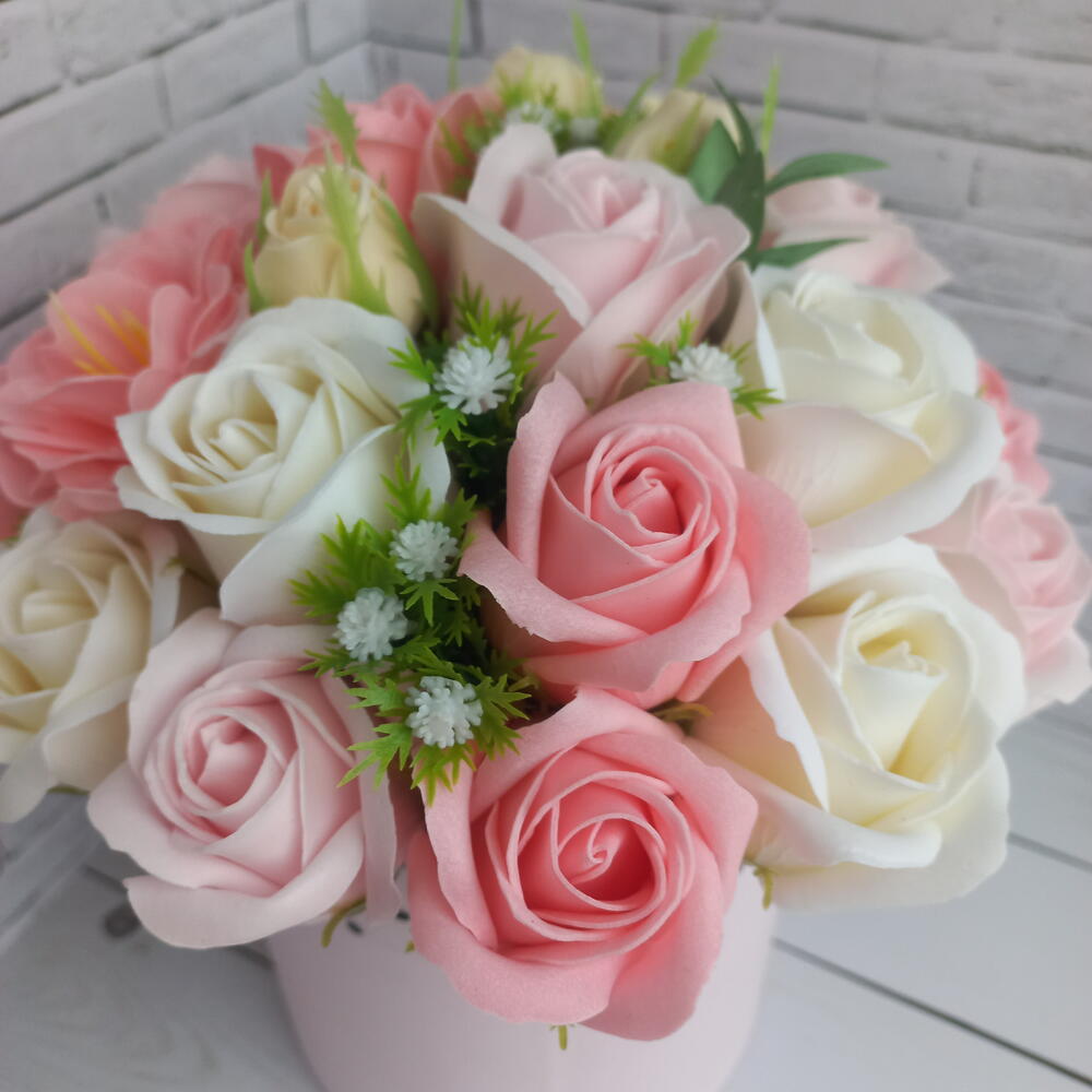 Букет из мыльных цветов 💐Количество цветов в букетике-25.Отличная альтернитива живым цветам. Такой букет не требует ухода и будет радовать около 5 лет. Цветы выполнены на основе шелковой пудры, мыльной эссенции и эфирного масла. Такой букет точно удивит и будет приятным сюрпризом нашим любимым женщинам,девушкам,подругам. Не нуждаются в поливе и подрезке.Имеют приятный , ненавязчивый запах.