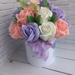 Букет из мыльных цветов 💐Количество цветов в букетике-21.Отличная альтернитива живым цветам. Такой букет не требует ухода и будет радовать около 5 лет. Цветы выполнены на основе шелковой пудры, мыльной эссенции и эфирного масла. Такой букет точно удивит и будет приятным сюрпризом нашим любимым женщинам,девушкам,подругам. Не нуждаются в поливе и подрезке.Имеют приятный , ненавязчивый запах.