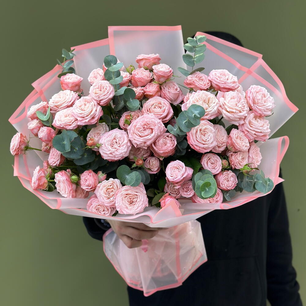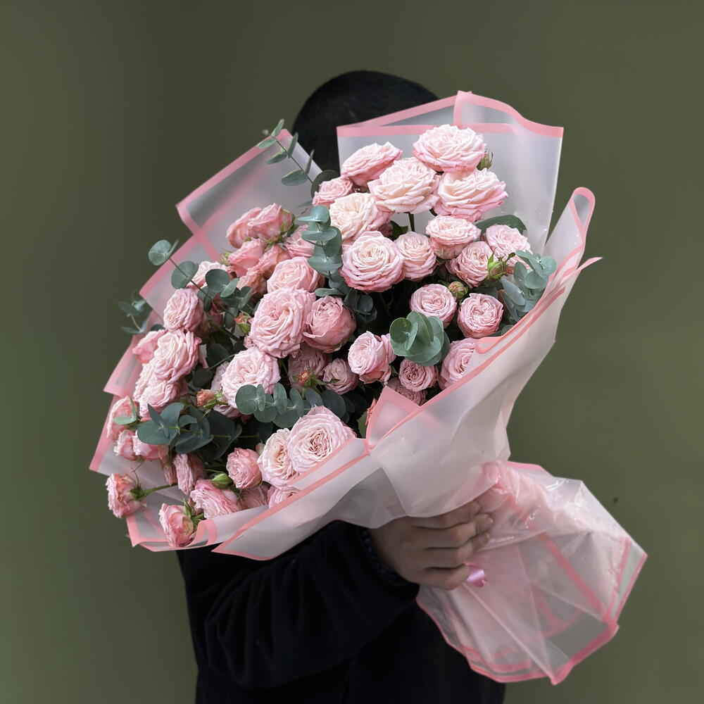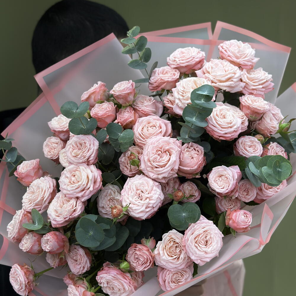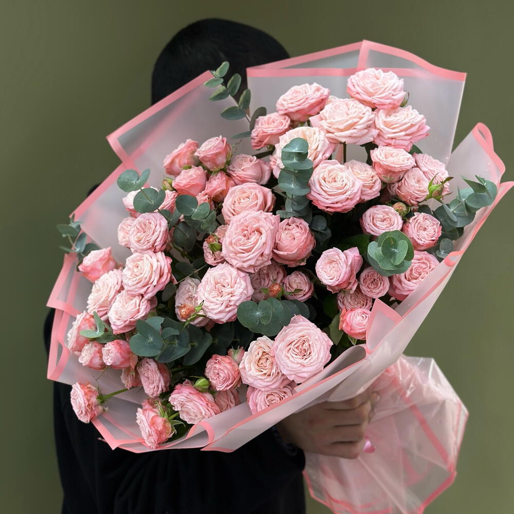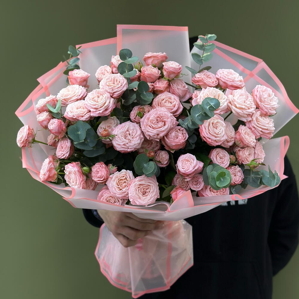 Эвкалипт - 2 шт. Кустовая роза розовая - 15 шт.