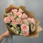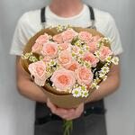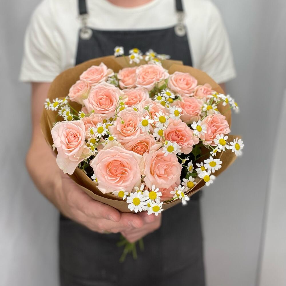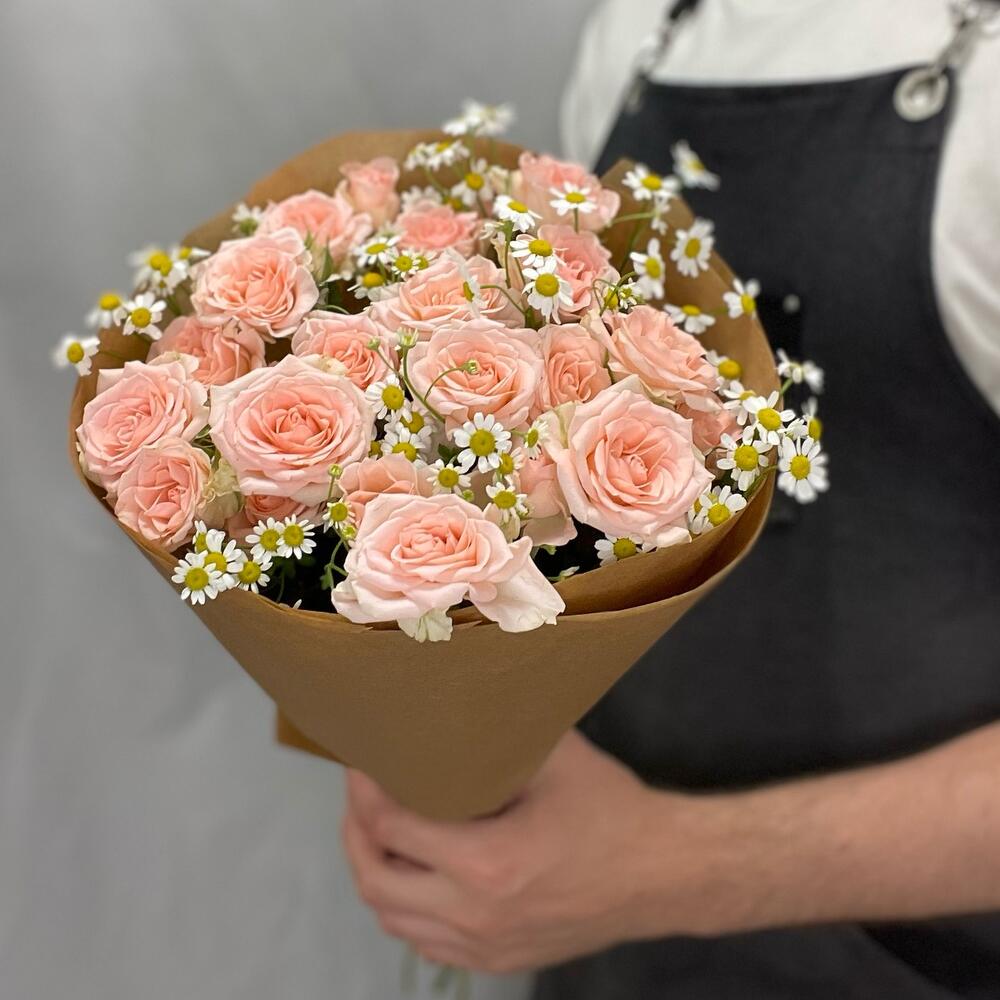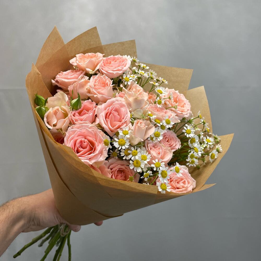 Кустовая роза - 8 шт. Ромашка - 3 шт. Крафт упаковка - 3 шт.