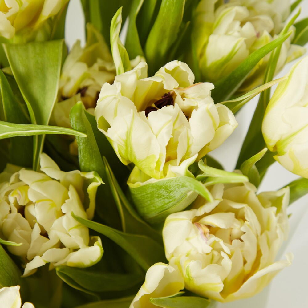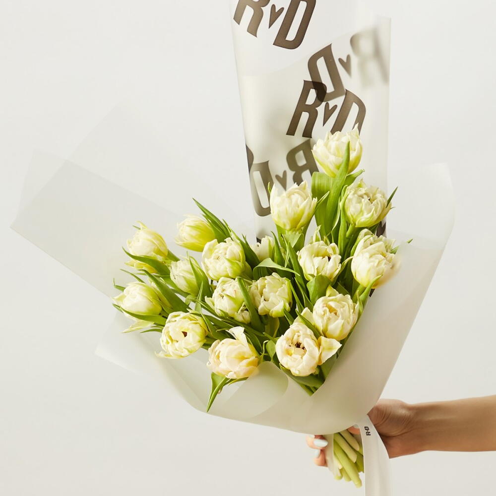 Нежный весенний букет из 21 пионовидных тюльпанов белого цвета. Упакованы в матовую пленку с лентами. К каждому букету — открытка в конверте, где мы напечатаем любое ваше «важное», инструкция по уходу и средство, чтобы цветы радовали дольше. А чтобы донести букет легко и аккуратно — добавьте аквапак и фирменную переноску при оформлении заказа. высота, мм: 400 ширина, мм: 300 длина, мм: 300
