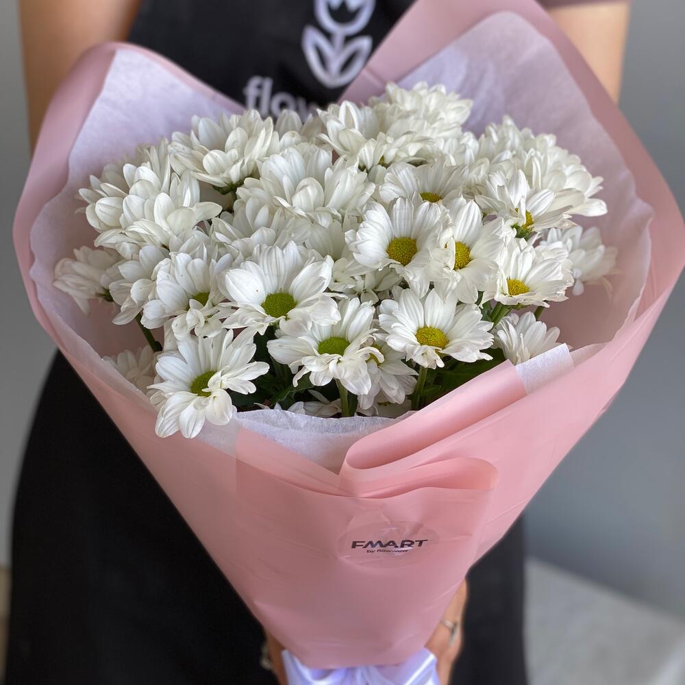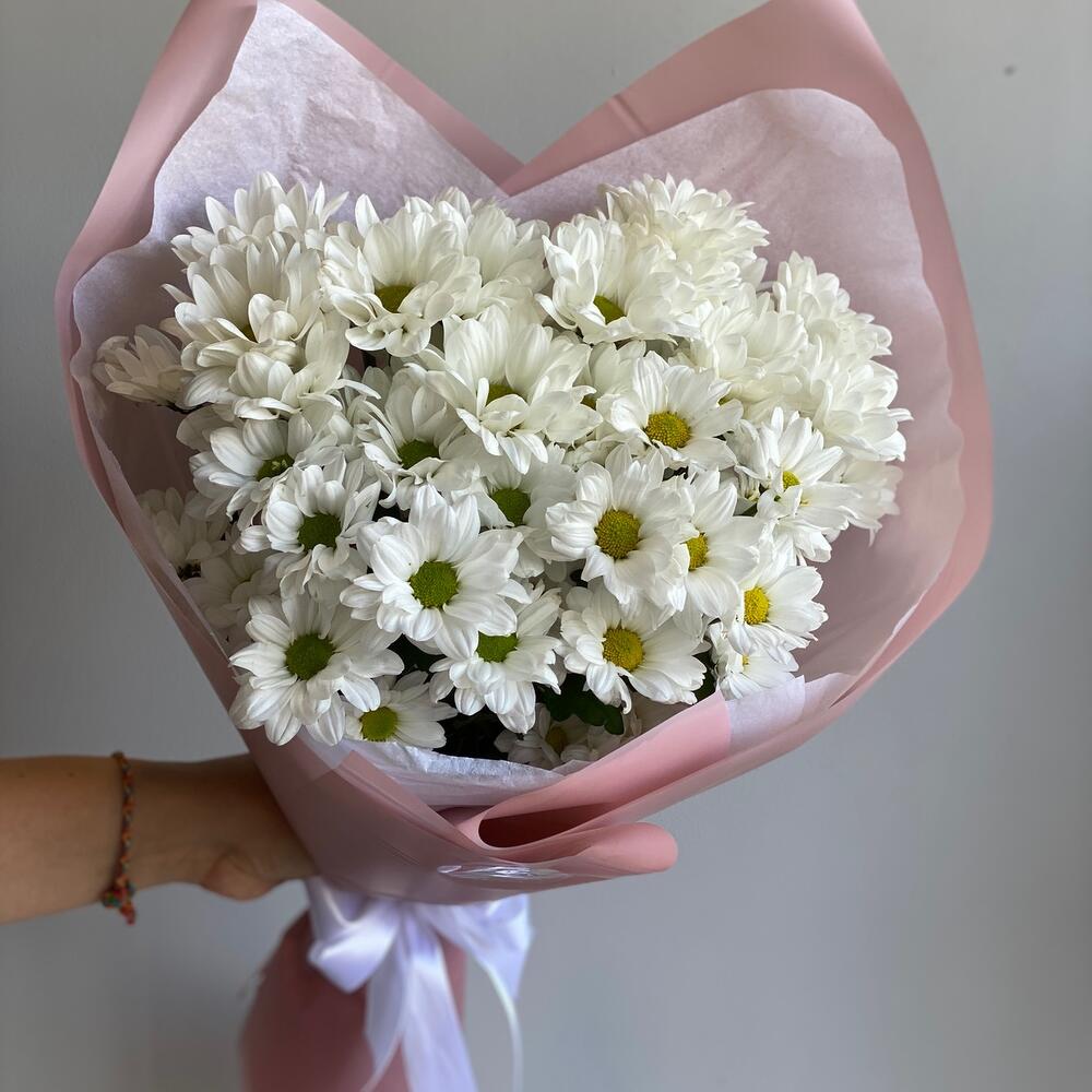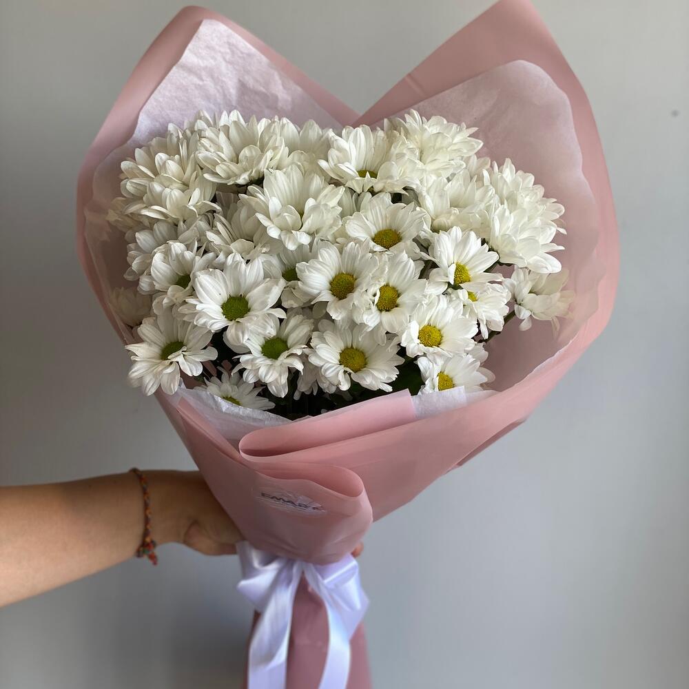 Букет-комплимент из ромашковидных хризантем может похвастаться своей стойкостью и лаконичностью 🤍 В подарок к заказу отправим подкормку для стойкости цветов и инструкцию по уходу за букетом/композицией. При необходимости добавим фирменную открытку с вашими словами 😌 В нашем магазине большой выбор цветов по низкой стоимости. Можно заказать доставку сборных и монобукетов из других цветов - всегда в наличии хризантемы, розы, гортензии, розы кустовые, альстромерии, ромашки. Дополнительно к букету вы можете приобрести открытку, воздушные шары в тон букету, подкормку, свечи из пчелиного и соевого воска, изделия из гипса, подарочные боксы, бомбочки для ванн и украшения.