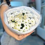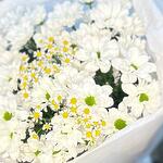 Лента атласная - 1 шт. Тишью - 2 шт. Упаковка дизайнерская - 1 шт. Хризантема кустовая ромашковая - 5 шт. Ромашка камилла - 2 шт.
