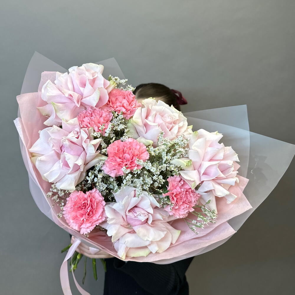 Букет из роз и диантусов (6885)