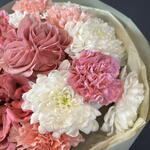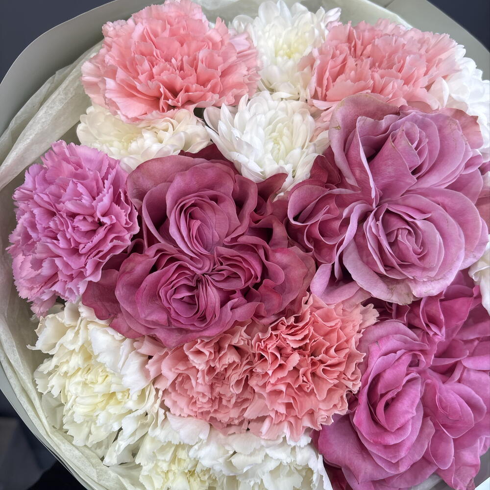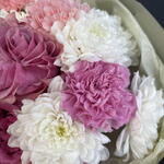 Гвоздика одноголовая - 9 шт. хризантема алтай - 2 шт. роза кантри блю(пионовидная) - 3 шт.