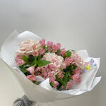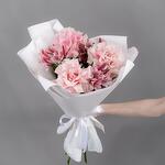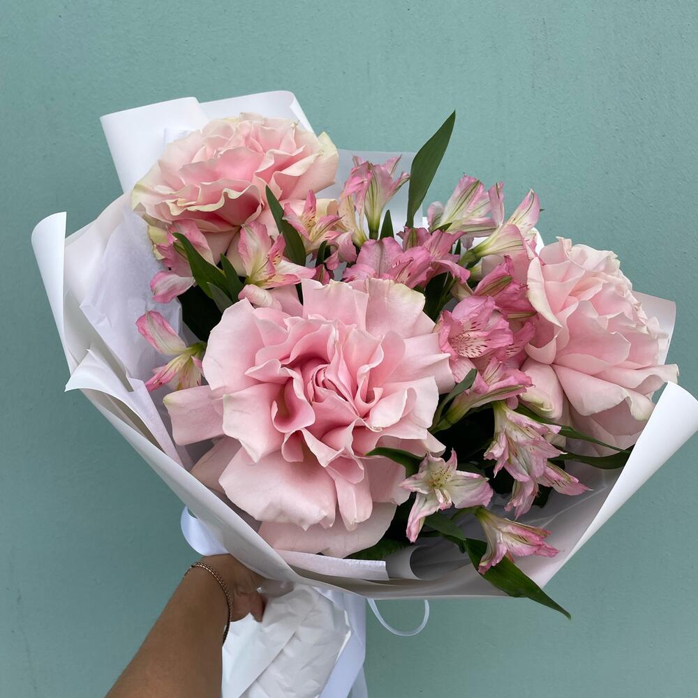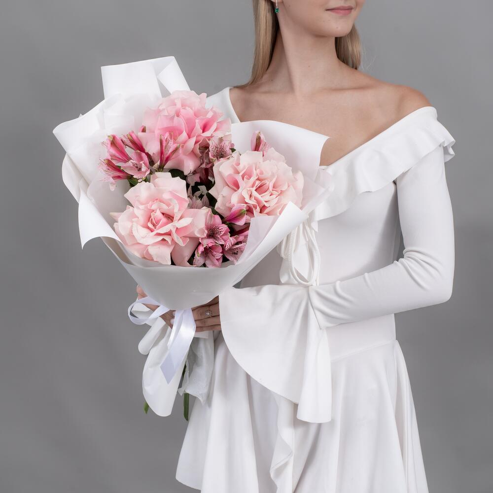 Букет из розовых французских роз и розовых альстромерий