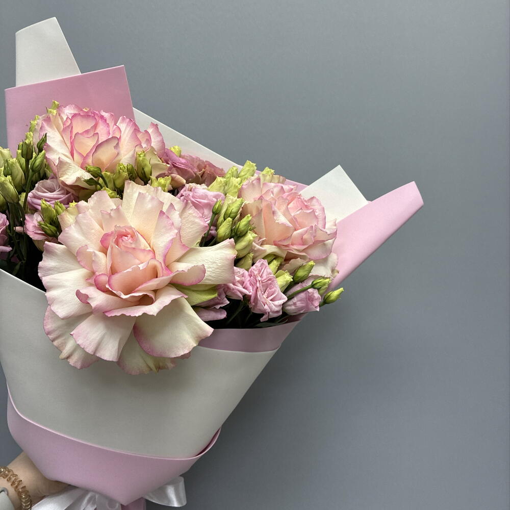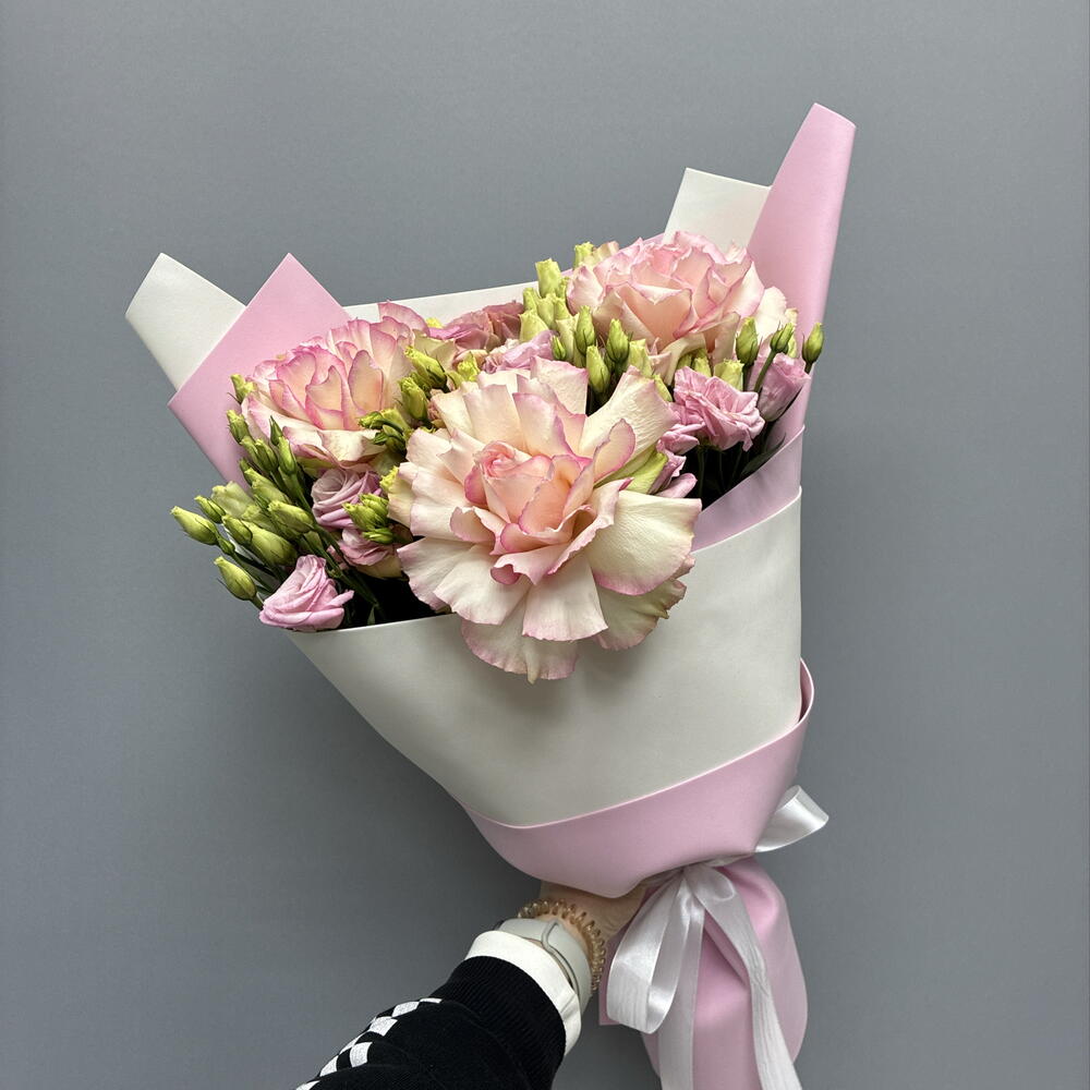 Букет из французских роз и эустом