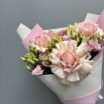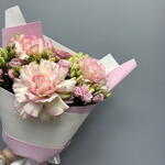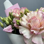 Роза - 3 шт. Эустома - 6 шт. Дизайнерская упаковка - 1 шт.