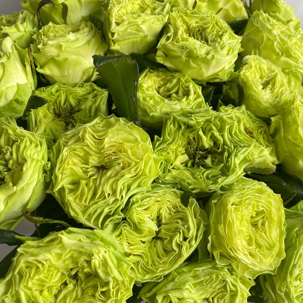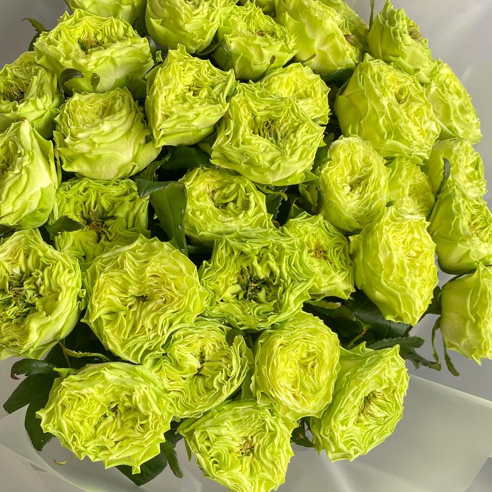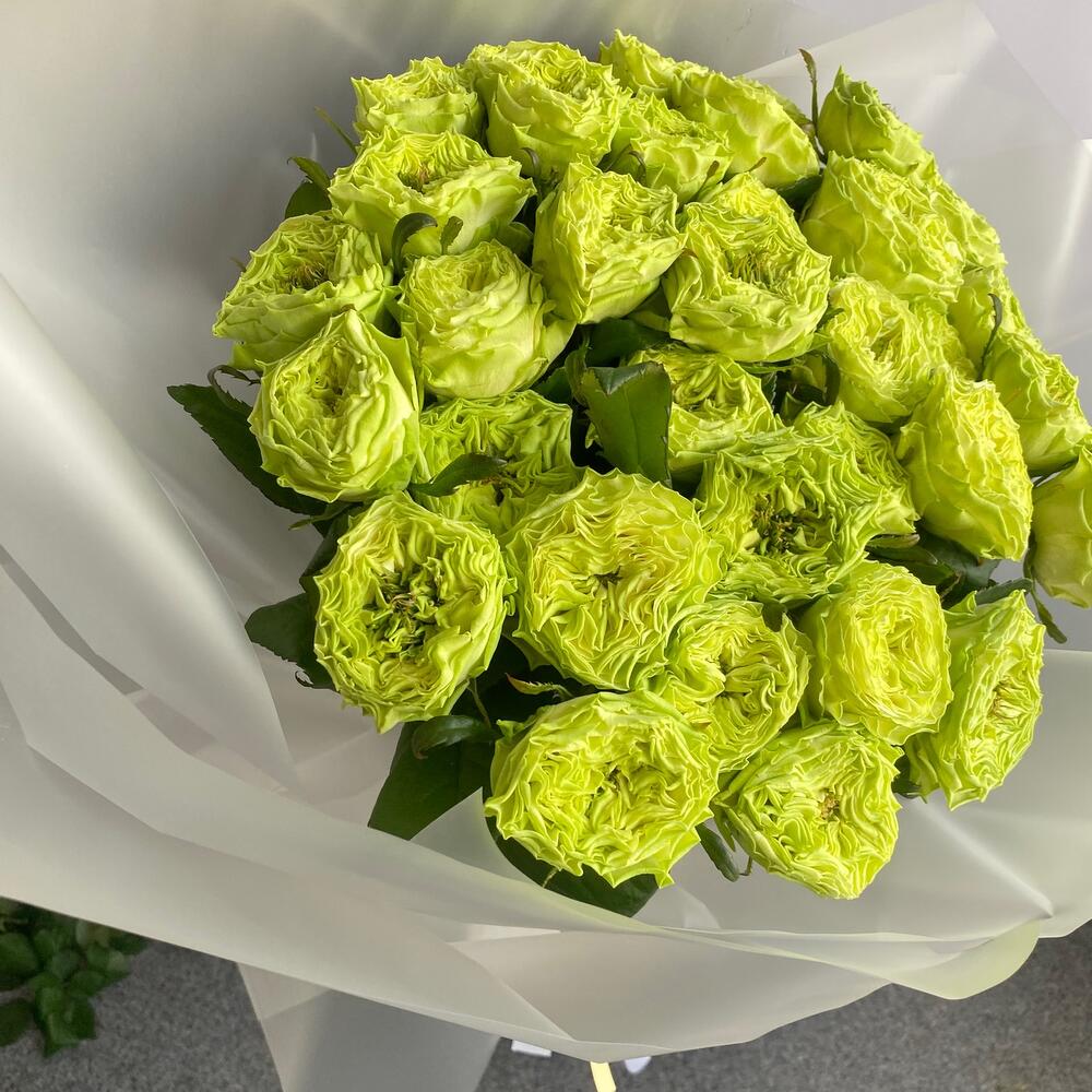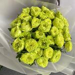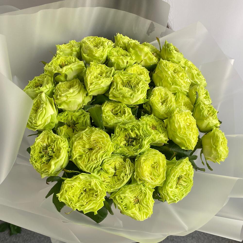 Атласная лента - 1 шт. Дизайнерская упаковка - 3 шт. роза зеленая пионовидная - 39 шт.