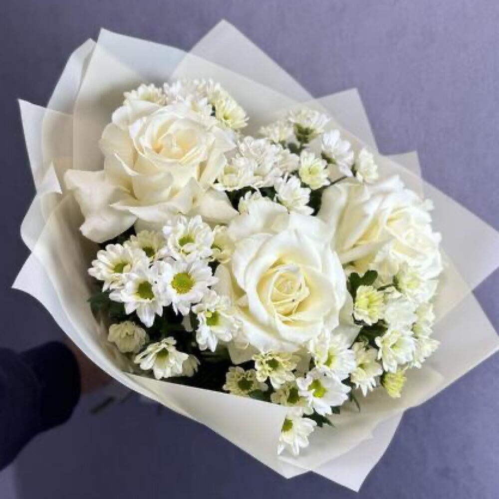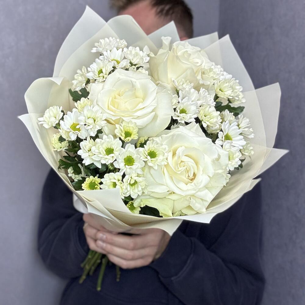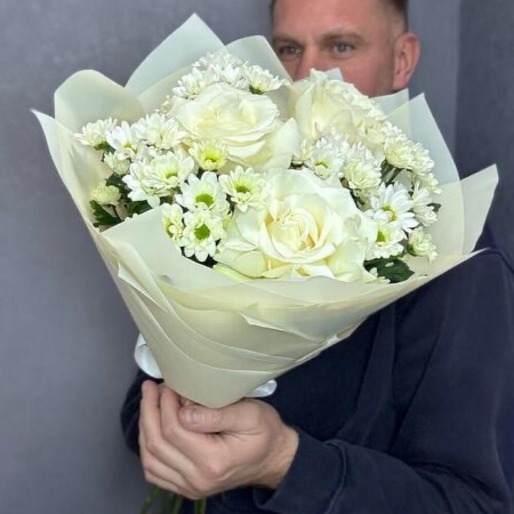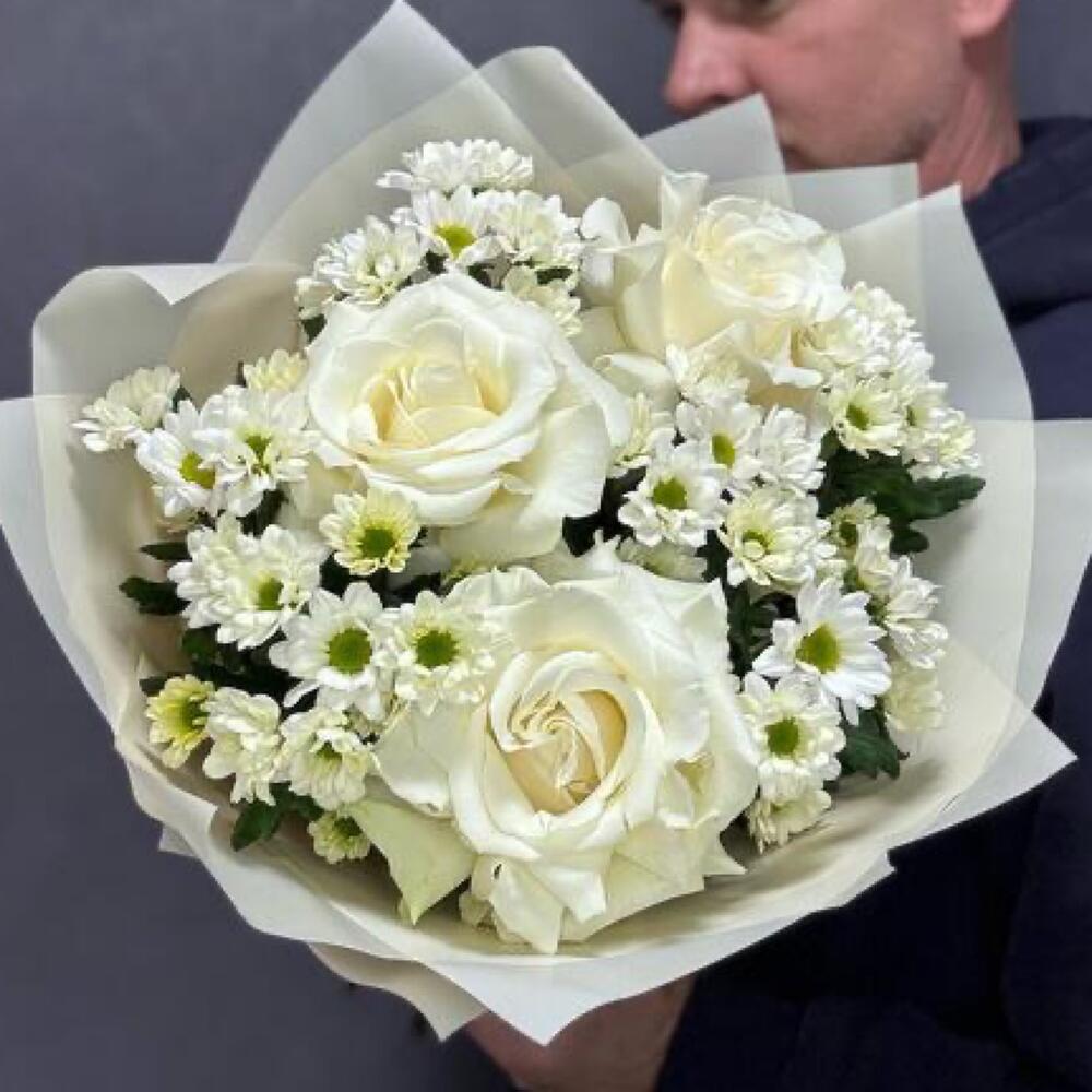 Идеальный букет для подарка из французских белых роз и стойких сантини в стильной упаковке. Дополните свой подарок, добавив к нему мягкую игрушку или воздушный шарик! 🎈 Это сделает его ещё более особенным и запоминающимся. Ведь сюрпризы всегда радуют и удивляют! Инструкция по уходу за букетом: Держите цветы подальше от сквозняков и приборов отопления. Ежедневно обновляйте свежую воду в вазе и подрезайте стебли на 1-1,5 см. Не оставляйте букет без воды на время более 15 минут. Для композиций на флористической губке необходим полив через день небольшим количеством свежей воды в центр композиции. ❤️Добавляйте товар и наш магазин в избранное, чтобы было легче нас найти.