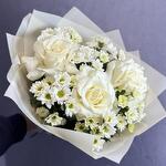 Букет из белых французских роз Мондиал и белых сантини