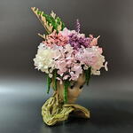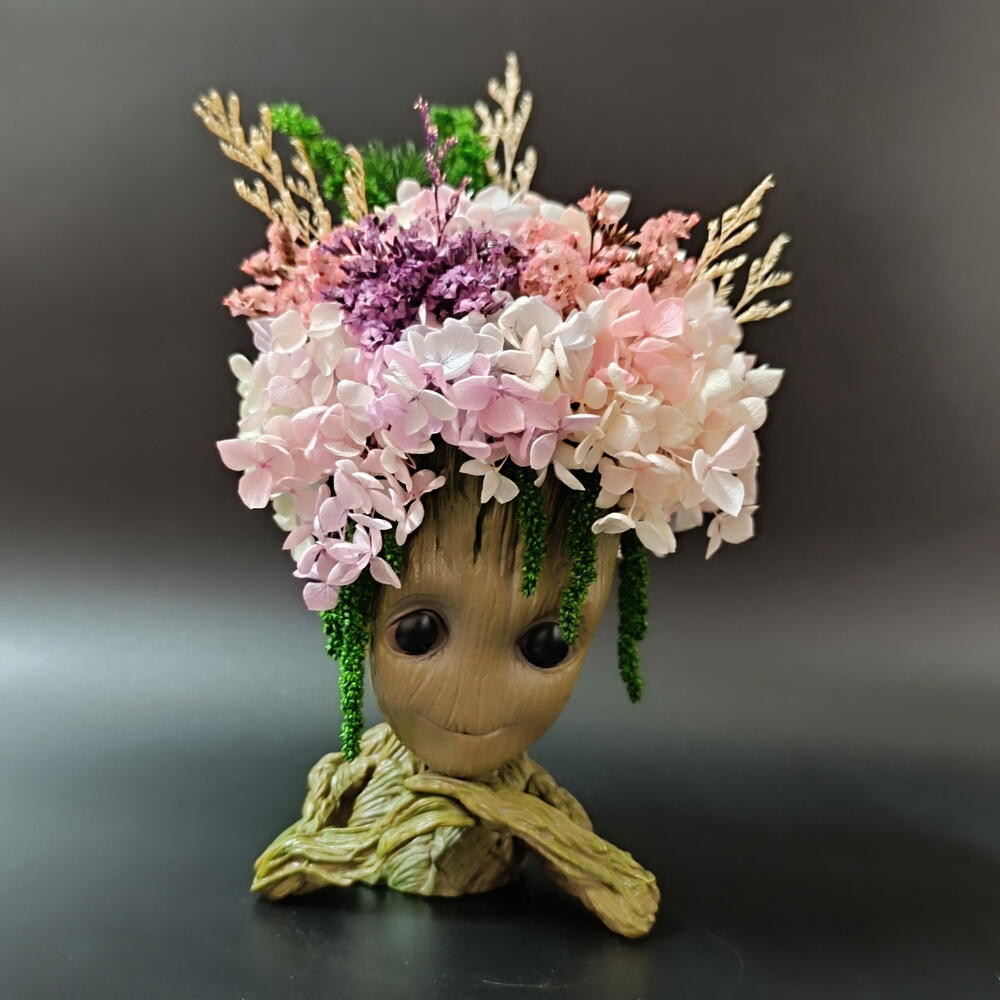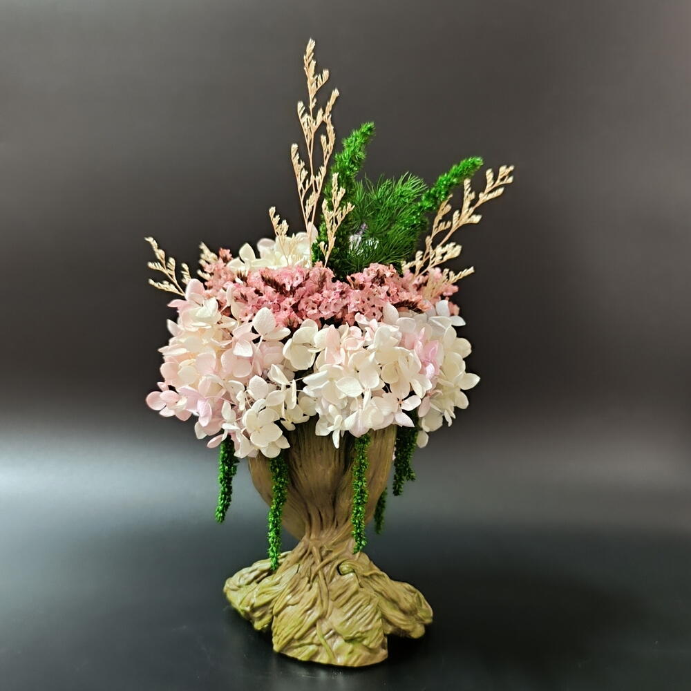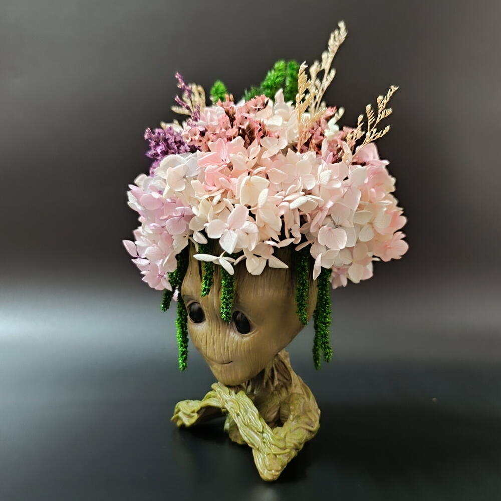 амарант стабилизированный - 1 шт. гортензия стабилизированная - 1 шт. кермек стабилизированный - 1 шт. грут кашпо - пластик - 1 шт.