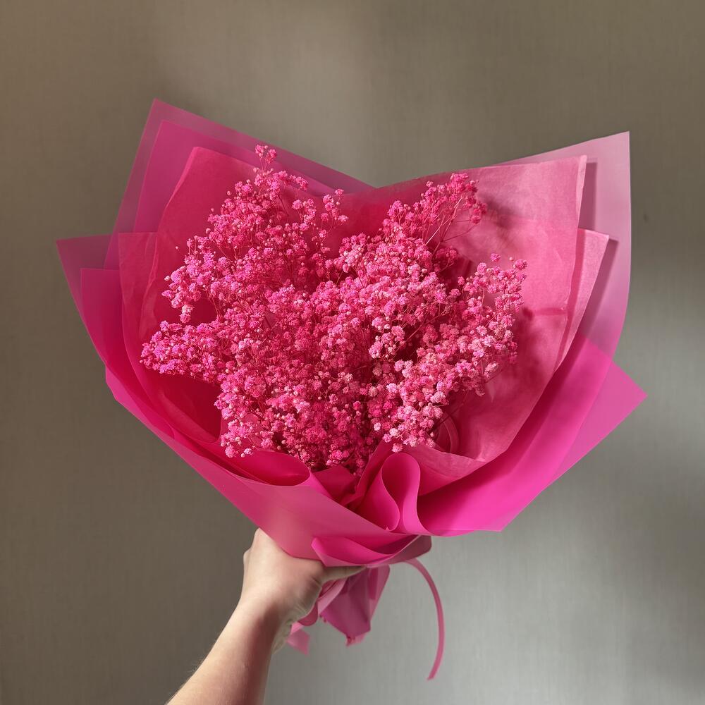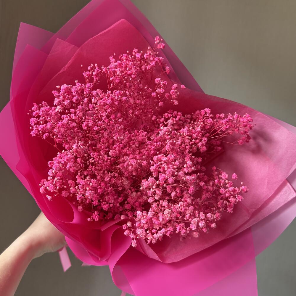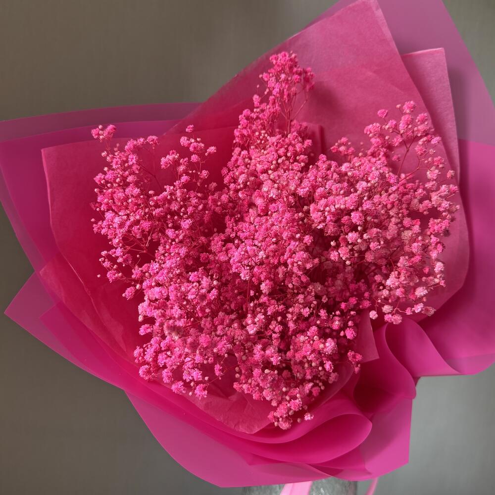 Букет из ярко-розовой стабилизированной гипсофилы нежный и легкий. В отличии от обычной гипсофилы сохраняет мягкость и эластичность, не сыпется со временем. Стабилизированные цветы - это живые цветы, которые сразу после срезки поместили в специальную жидкость на основе глицерина. Этот процесс называется стабилизацией, он позволяет живым цветам сохранять свой первоначальный внешний вид на долгое время. Поэтому этот букет: 🌱 из натуральных цветов 🌱 он не завянет 🌱 и ему не нужна вода Размер букета в описании по правилам площадки указан с учетом упаковки. Букет доставляется в защищенном виде (бумага тишью и крафт-пакет), в подарок идет инструкция по уходу и не большой сладкий презент. *иногда из за резкого перепада температуры, увеличения уровня влажности в воздухе стабилизированные растения могут выделять не большое количество капель стабилизирующего раствора из стебля растения. Это явление является нормой, эти капельки следует удалять сухой салфеткой по мере их появления.