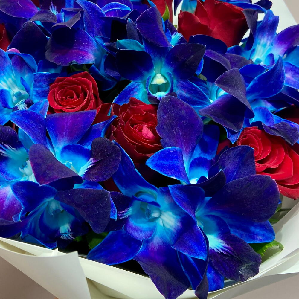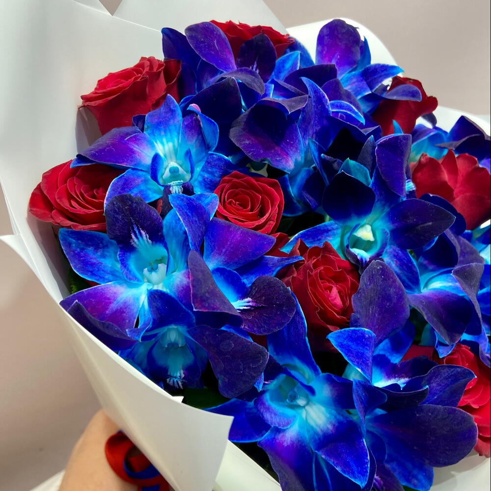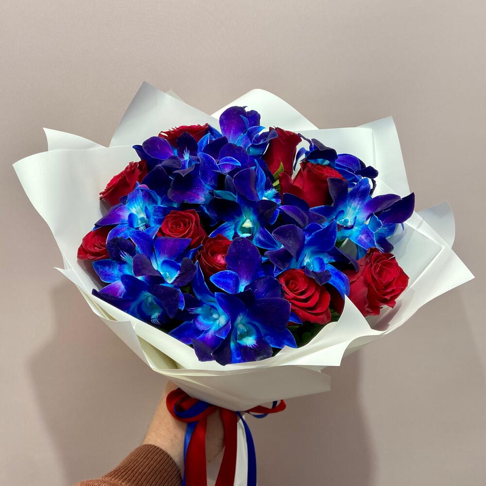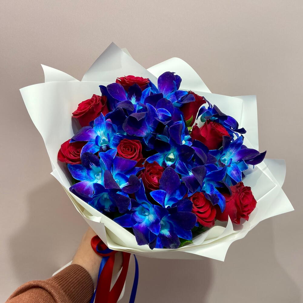 Букет «КОСМОС» из орхидей дендробиум и роз