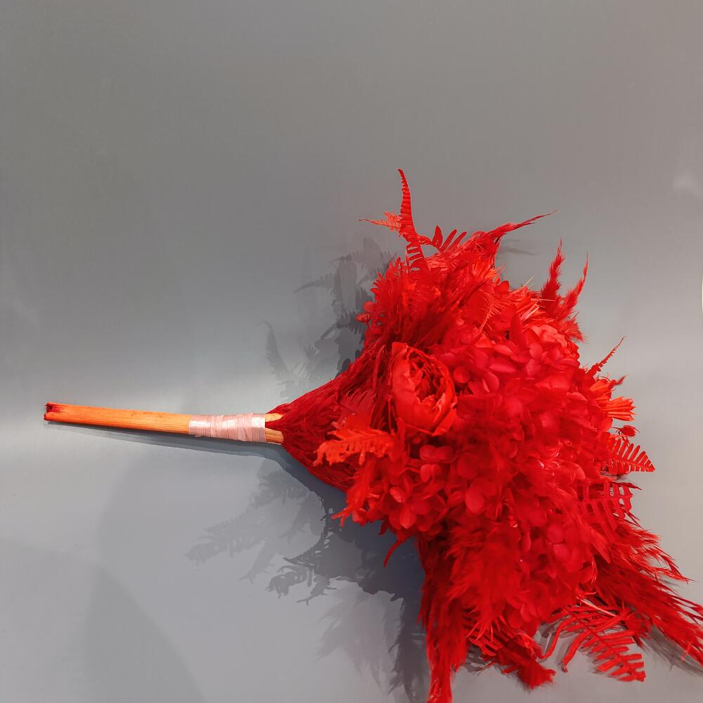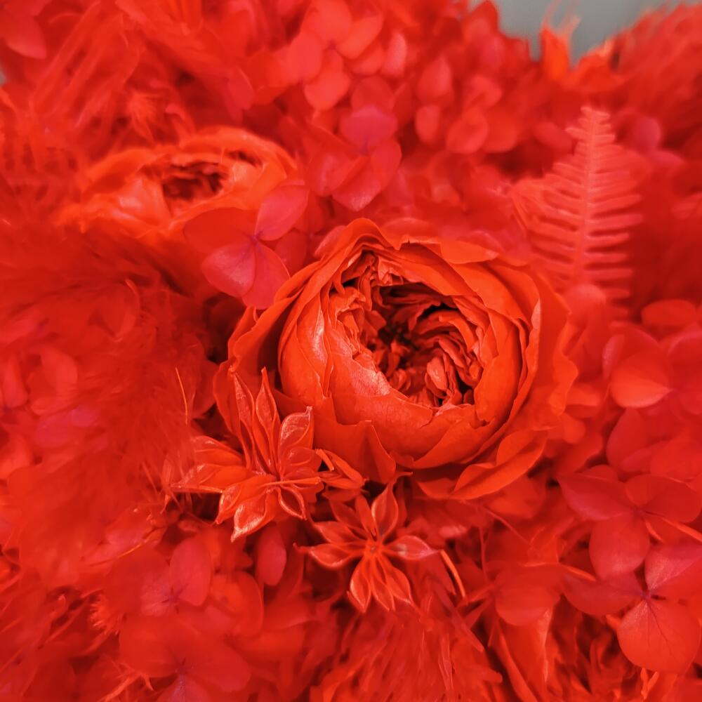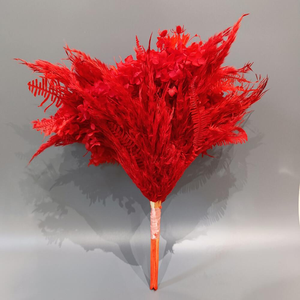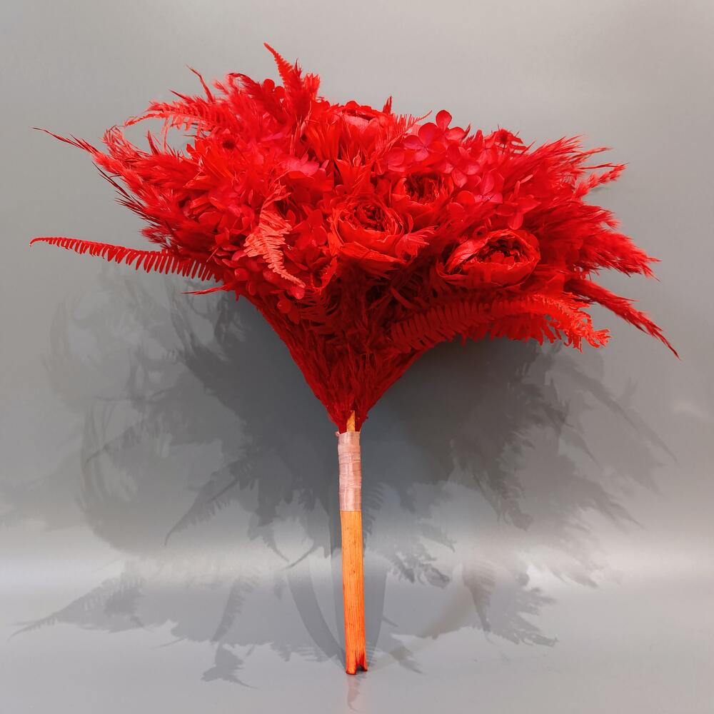 Гортензия - 1 шт. Папоротник - 3 шт. Роза - 5 шт. Лента атласная - 1 шт. Каркас - 1 шт. Синеголовник - 2 шт. Нигелла - 2 шт. пампасная трава - 2 шт.
