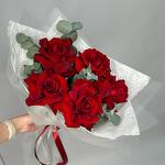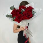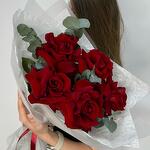 Букет красных роз с эвкалиптом