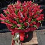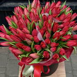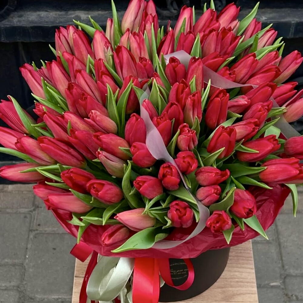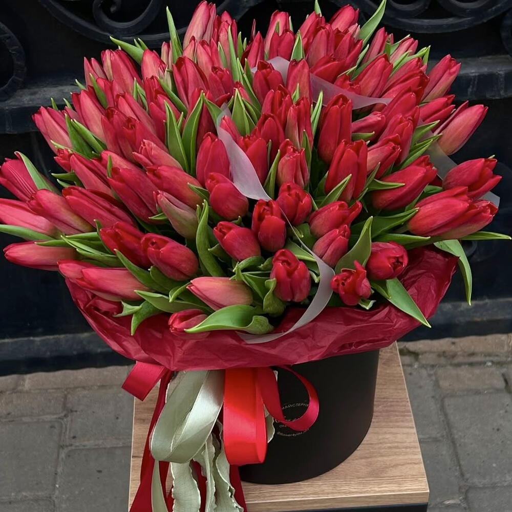 Букет красных тюльпанов в коробке